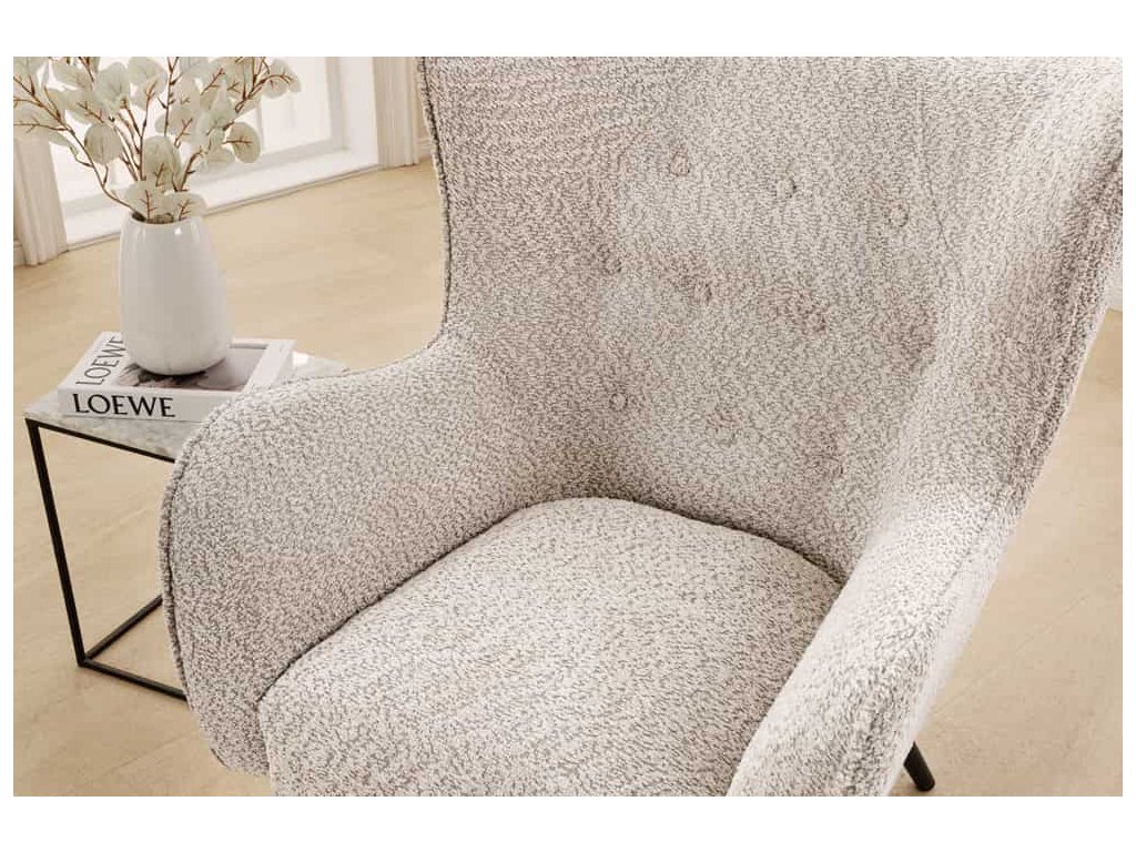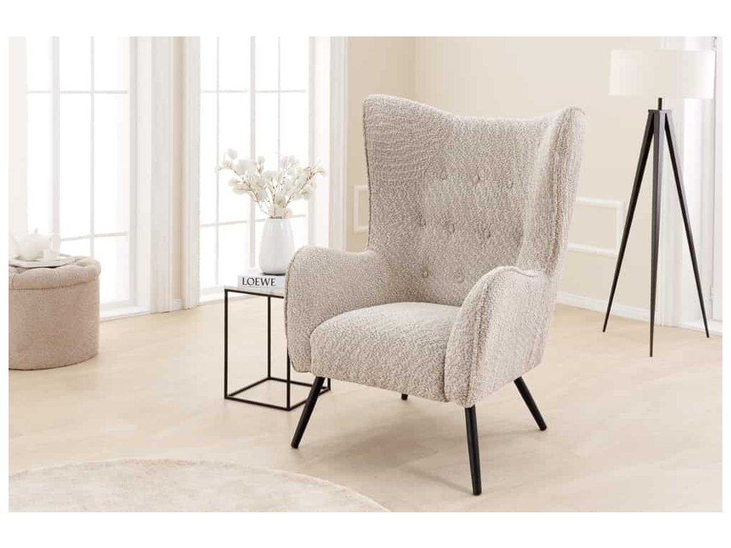 Křeslo ušák AMSTERDAM kudrnaté greige černé kovové nohy