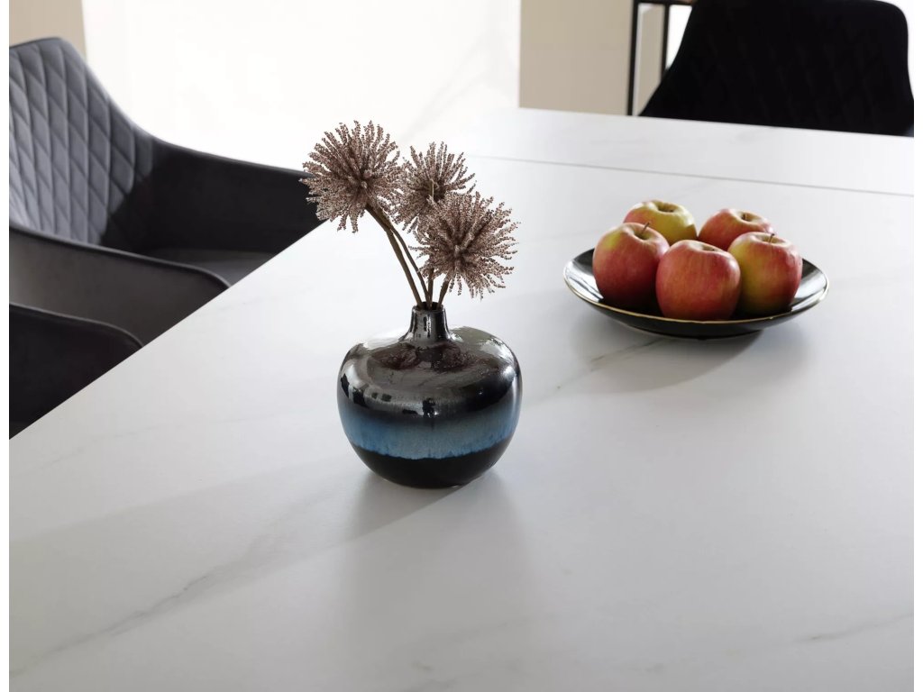 Rozkládací stůl, deska: keramika, rám: kov, barva: matná bílá / matná černá.