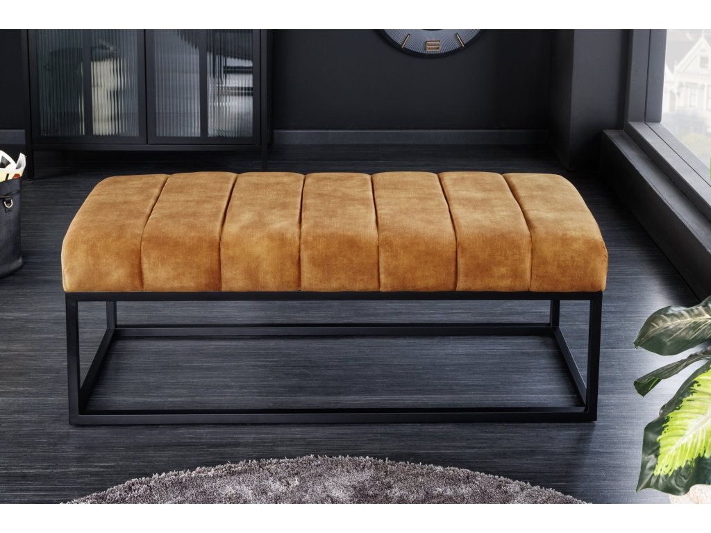 Lavička PETIT BEAUTÉ 110cm sametově hořčicová žlutá