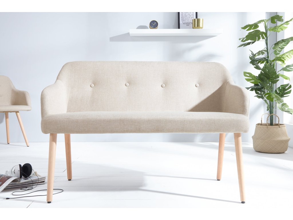 Lavička SCANDINAVIA 116cm s područkami texturovaná látka přírodní