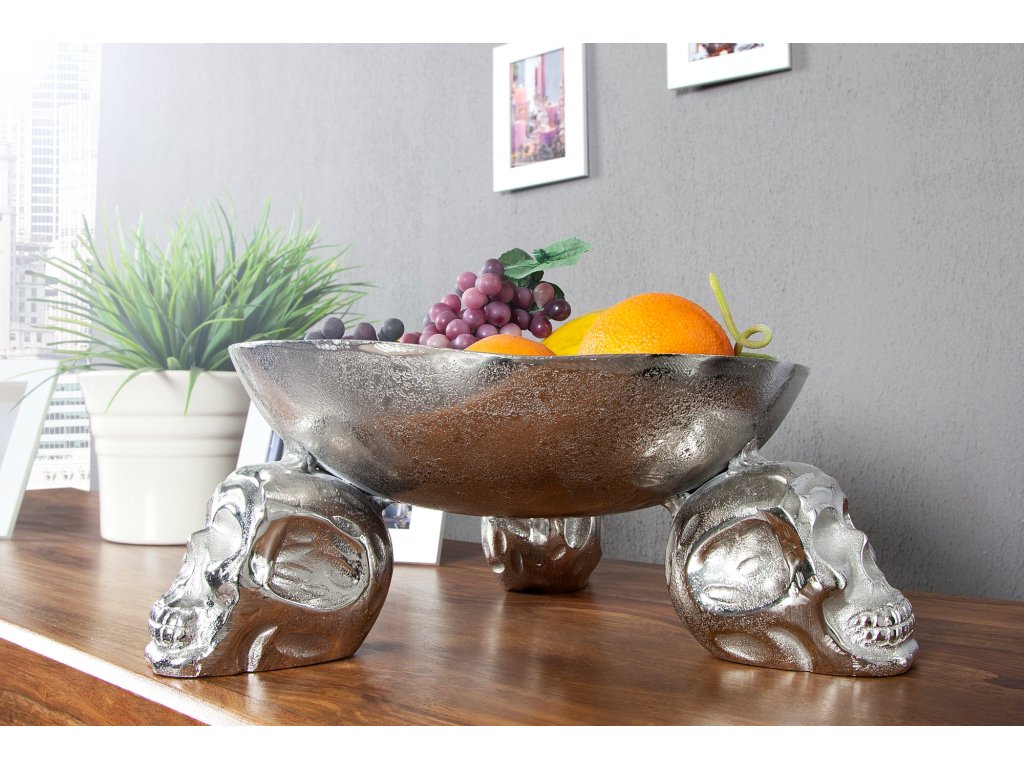 Mísa na ovoce SKULL 35cm hliníková stříbrná