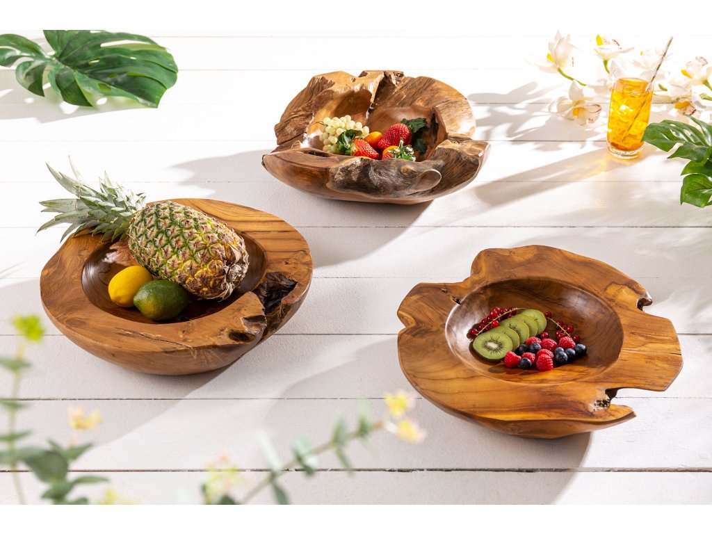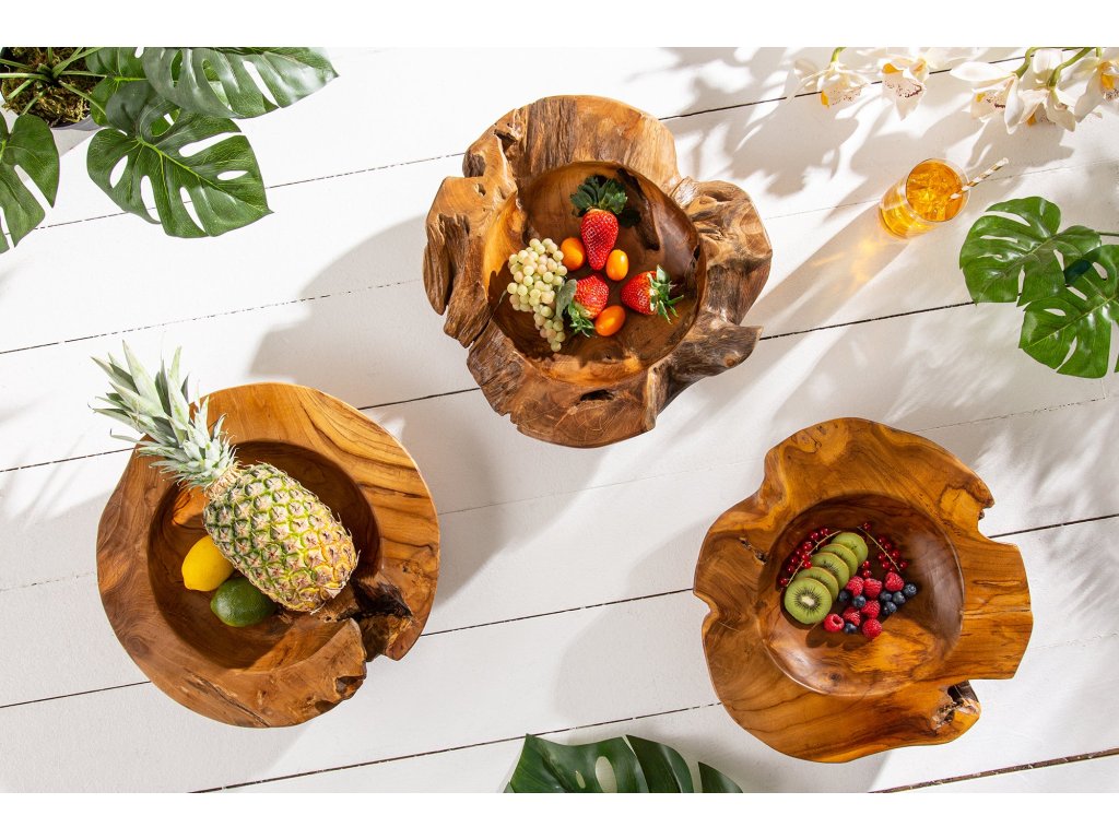 Miska z kořenového dřeva 40 cm teakové dřevo voskované přírodní