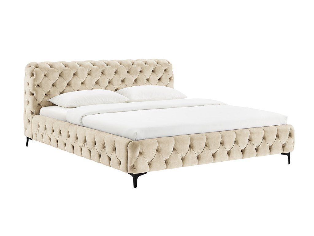 Moderní barokní postel 180x200cm sametová šampaňská ve stylu Chesterfield