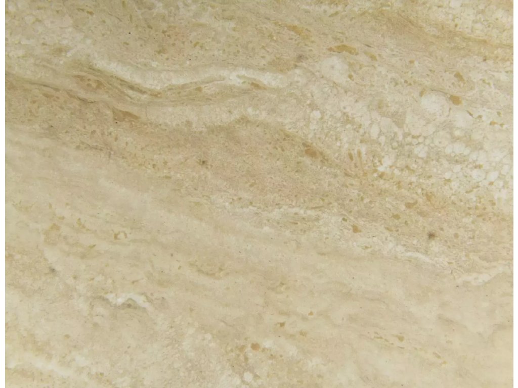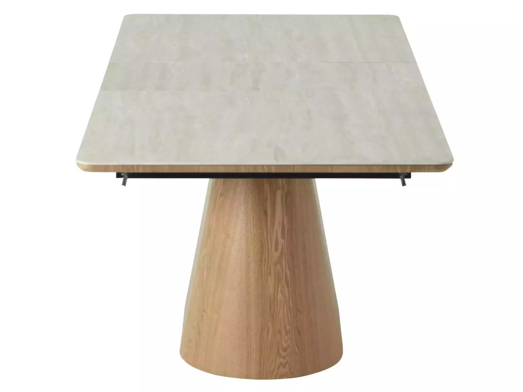 Rozkládací stůl, deska: keramika, rám: MDF + přírodní dýha, barva: travertin béžová matná / dub.
