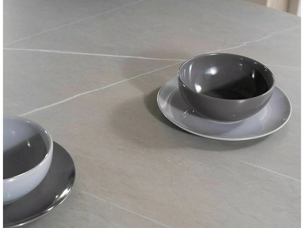Stůl, deska: keramika, mramorový efekt, rám: kov, barva: šedá / matná černá.