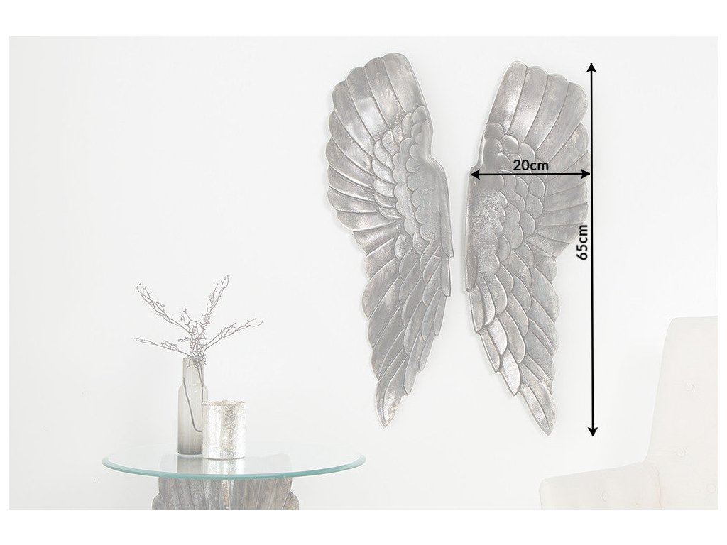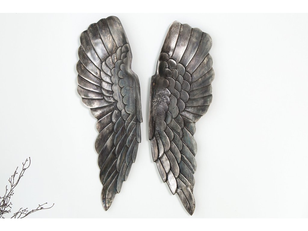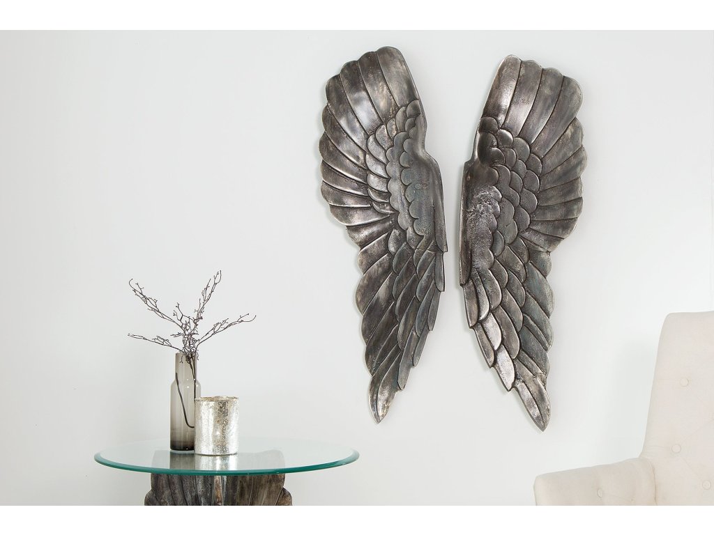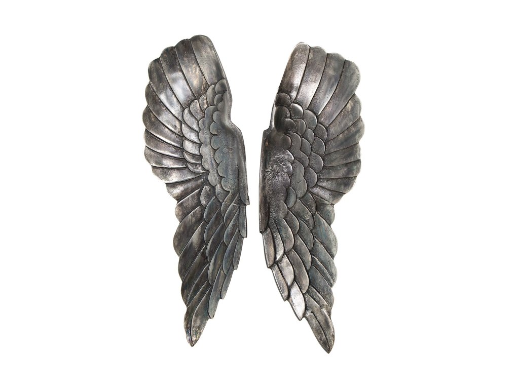 Nástěnná dekorace FALLEN ANGEL 65cm starožitný stříbrný bronz