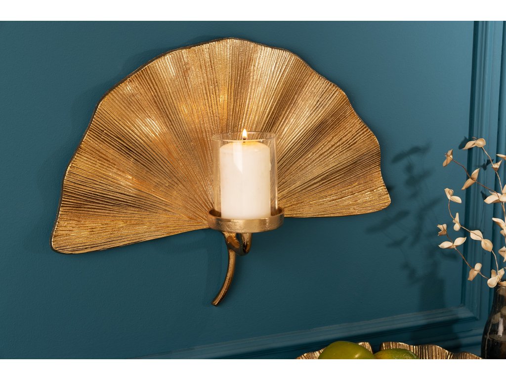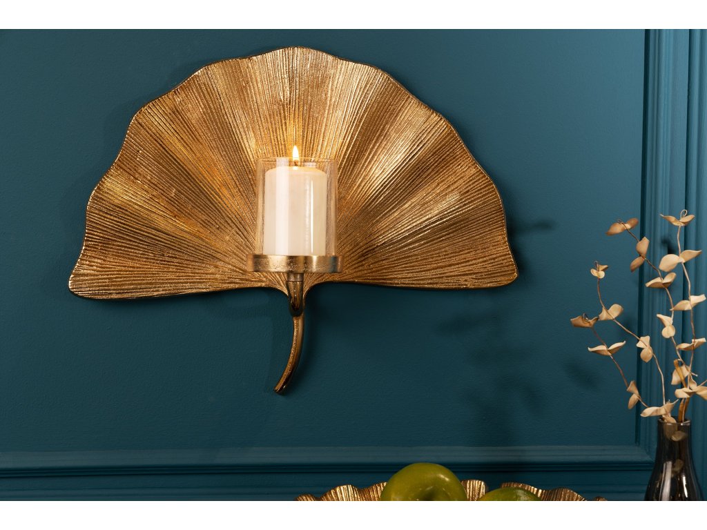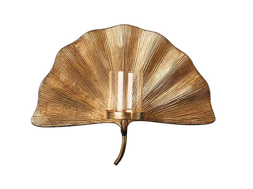 Nástěnná dekorace svícen GINKGO zlatý
