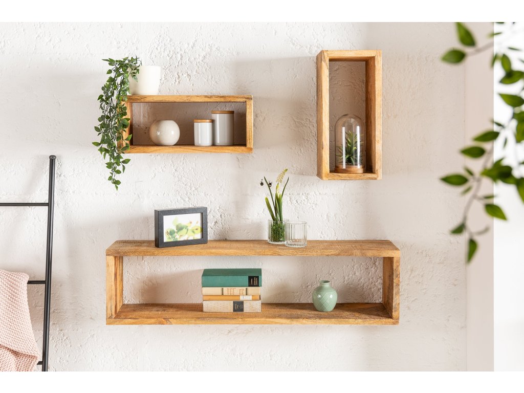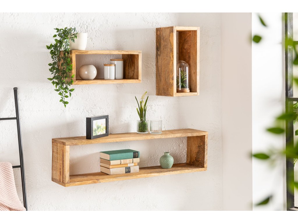 Nástěnná police HEMINGWAY 43-94cm sada 3 ks manga natural