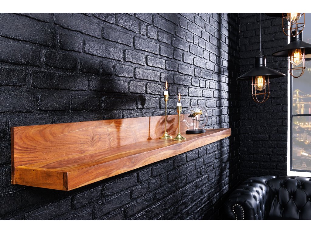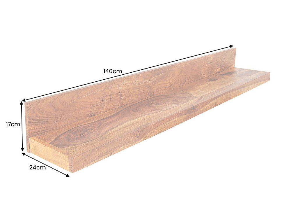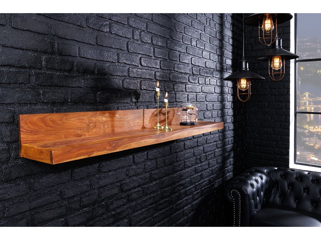 Nástěnná police MAKASSAR 140cm přírodní kámen úprava sheesham dřevo