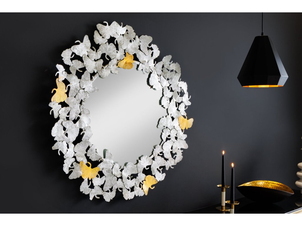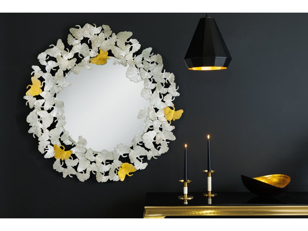 Nástěnné zrcadlo GINKGO LEAVES 95cm zlato stříbro