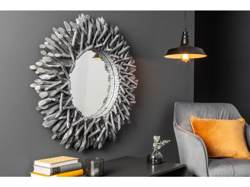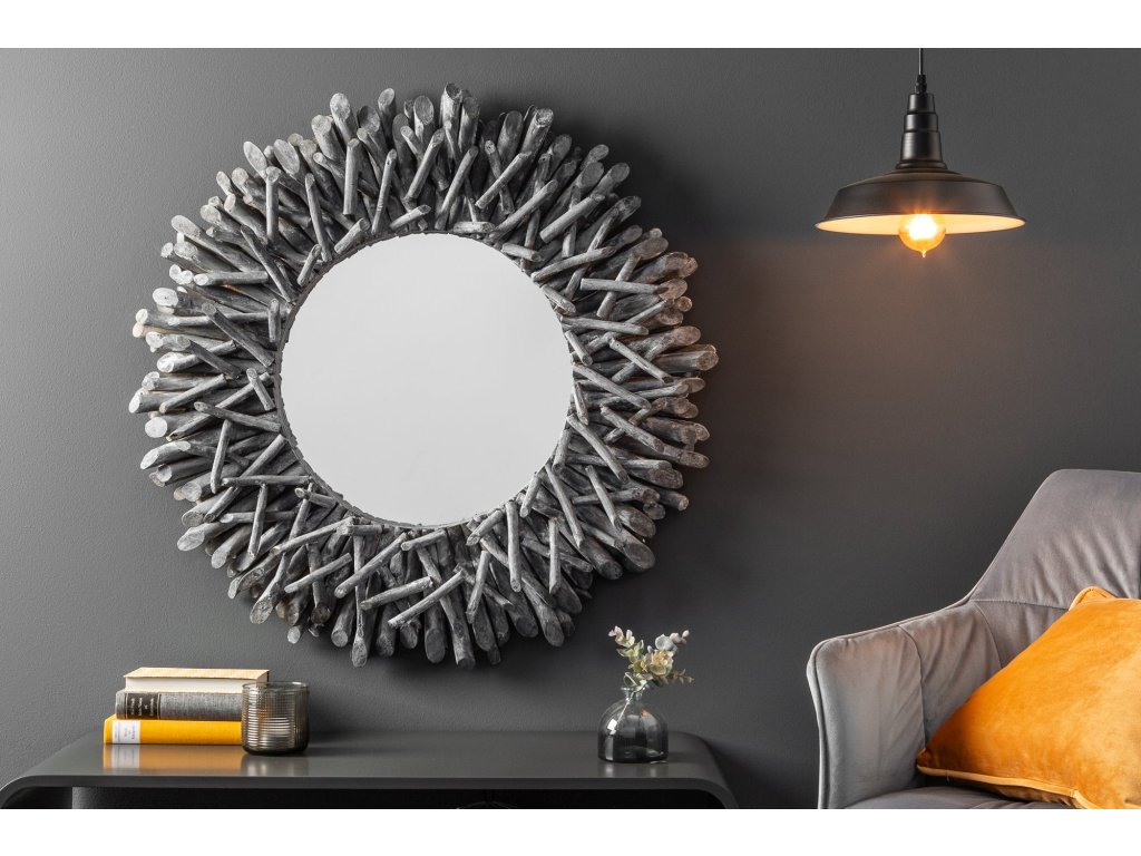 Nástěnné zrcadlo RIVERSIDE 80cm naplavené dřevo šedé