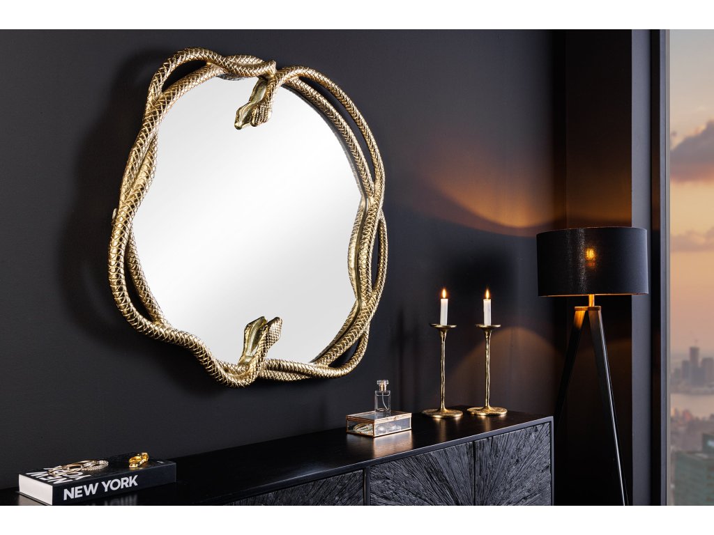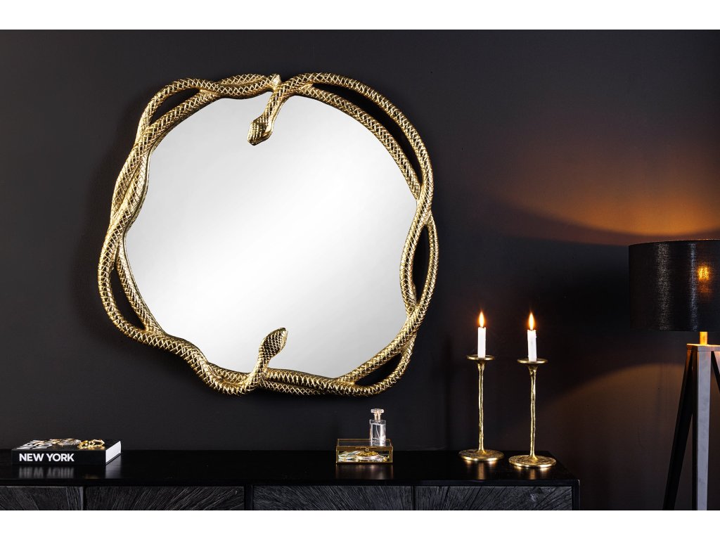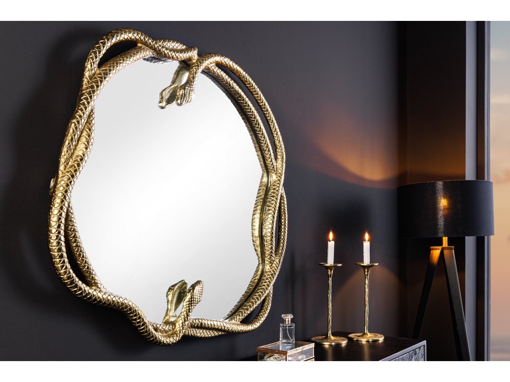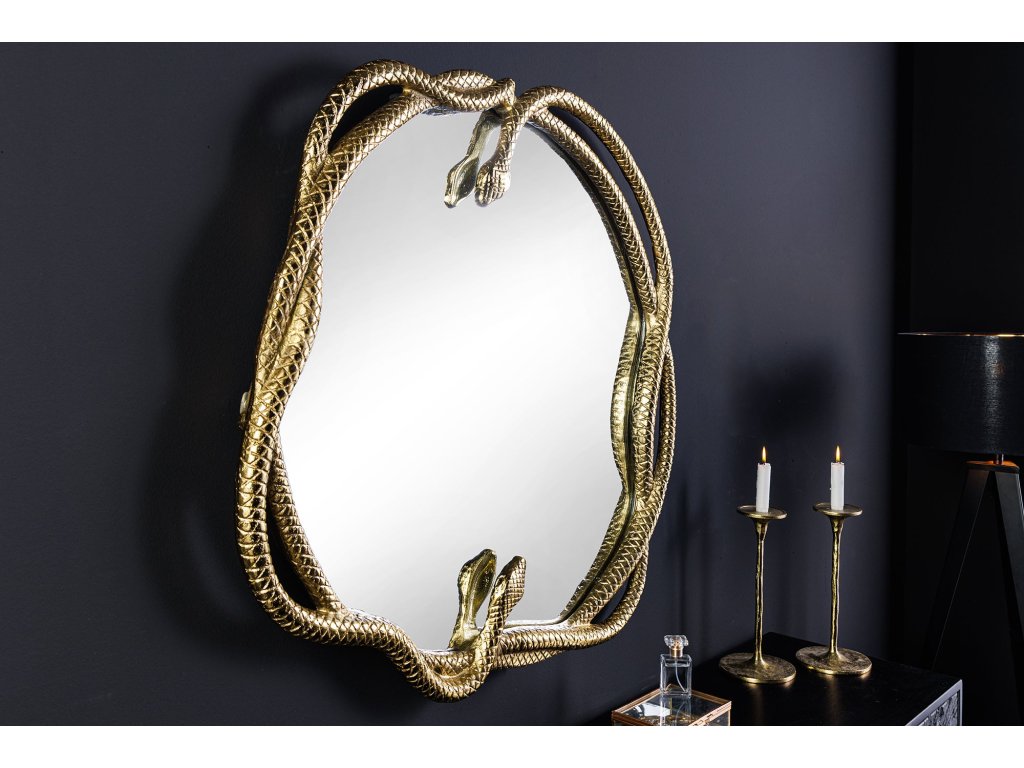 Nástěnné zrcadlo SNAKE XL 85cm zlaté s ozdobným prvkem ve tvaru hada