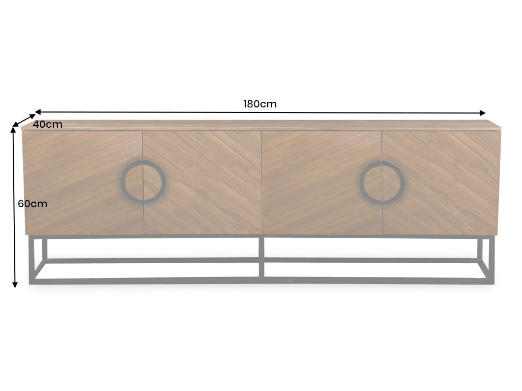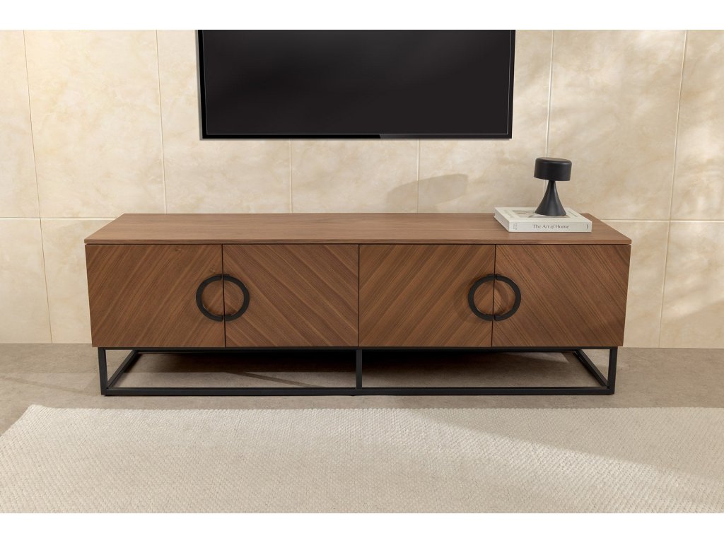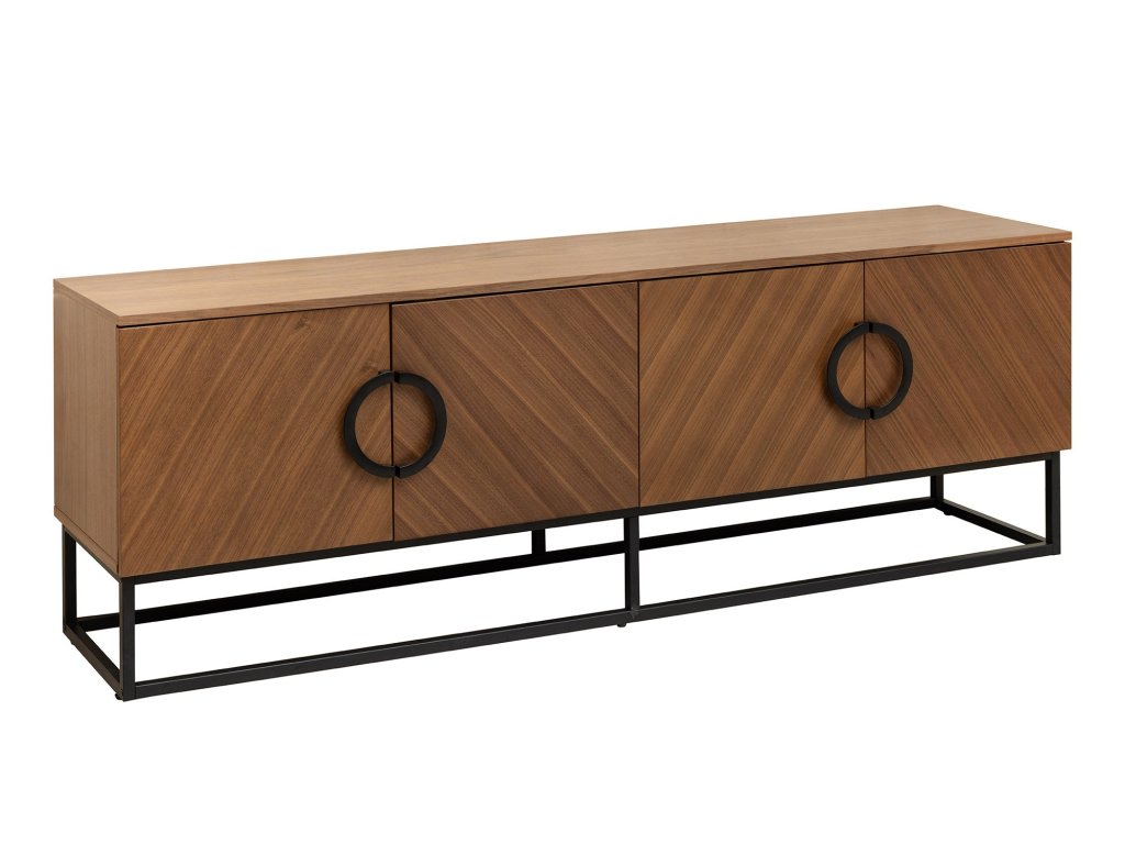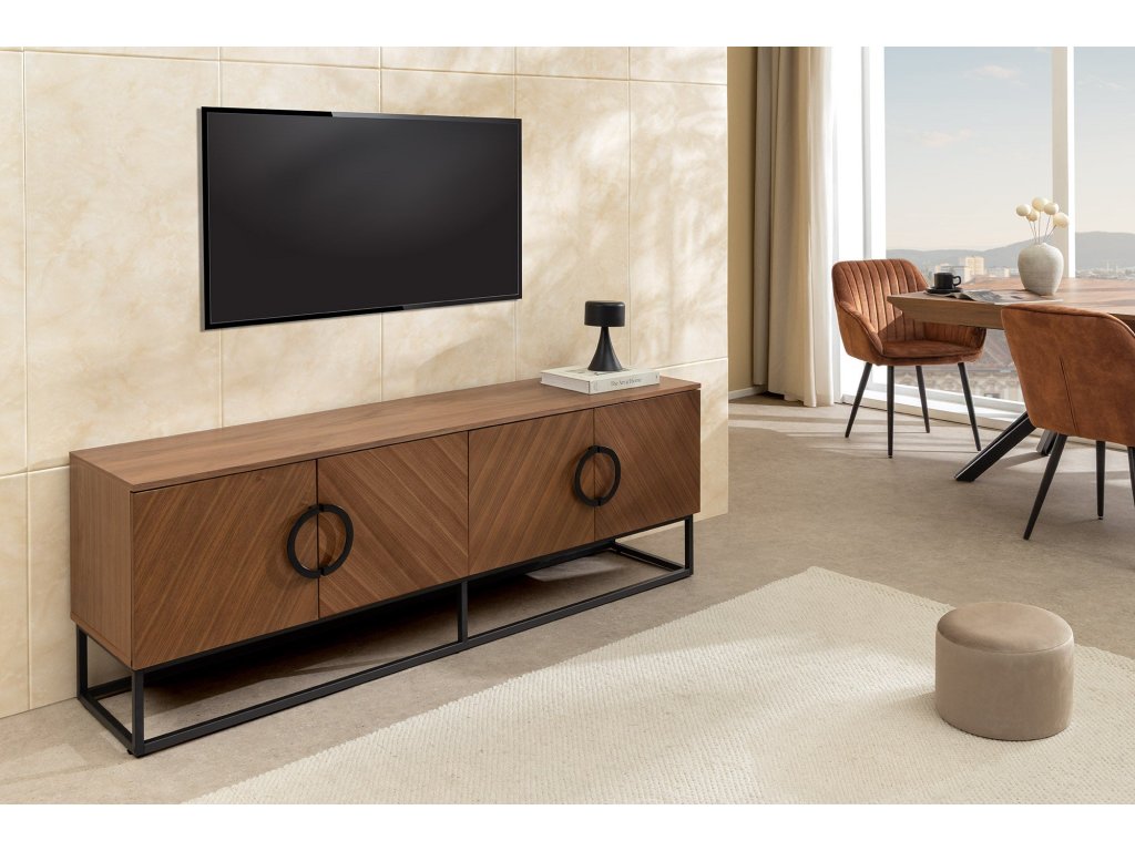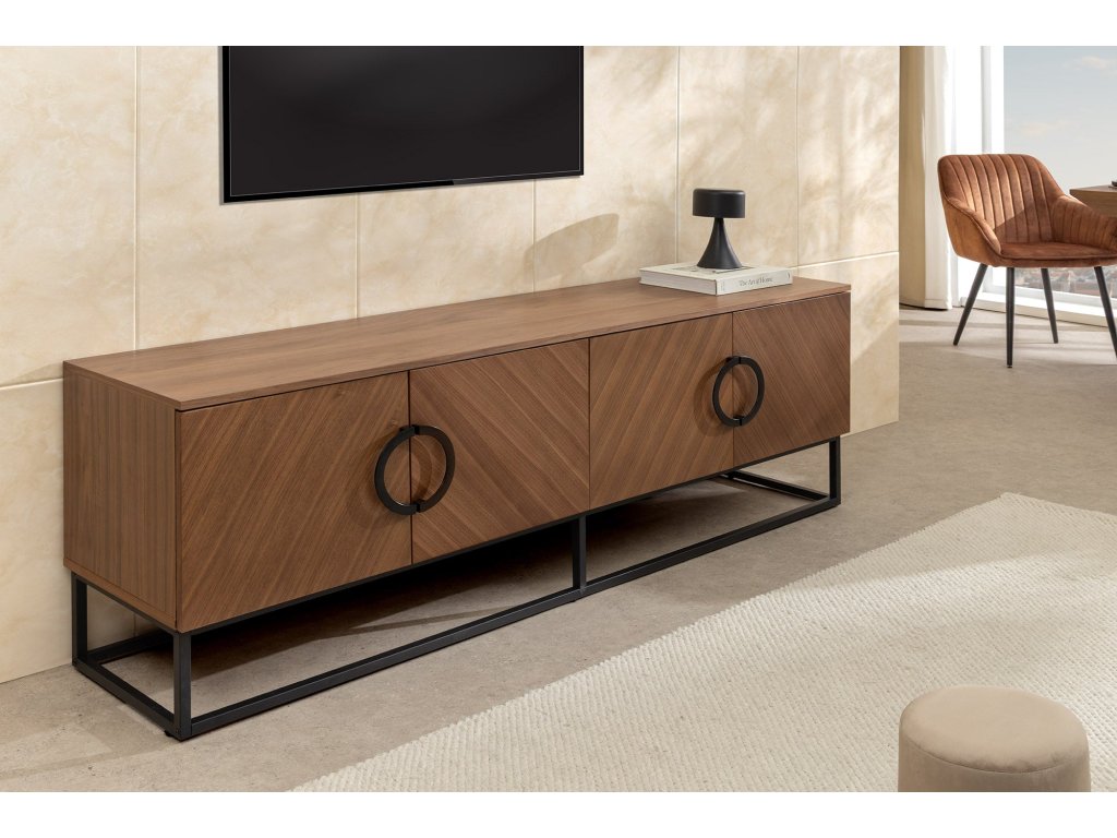 Nízký TV stolek GRANDEZZA 180 cm, imitace ořechového dřeva, s černým kovovým rámem