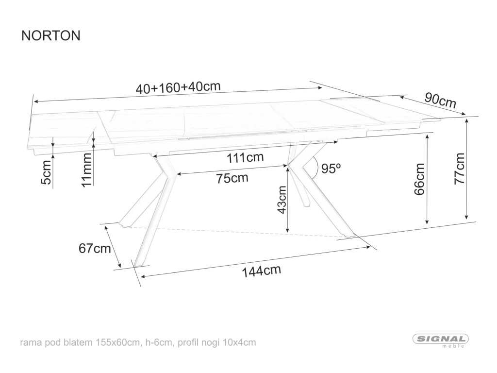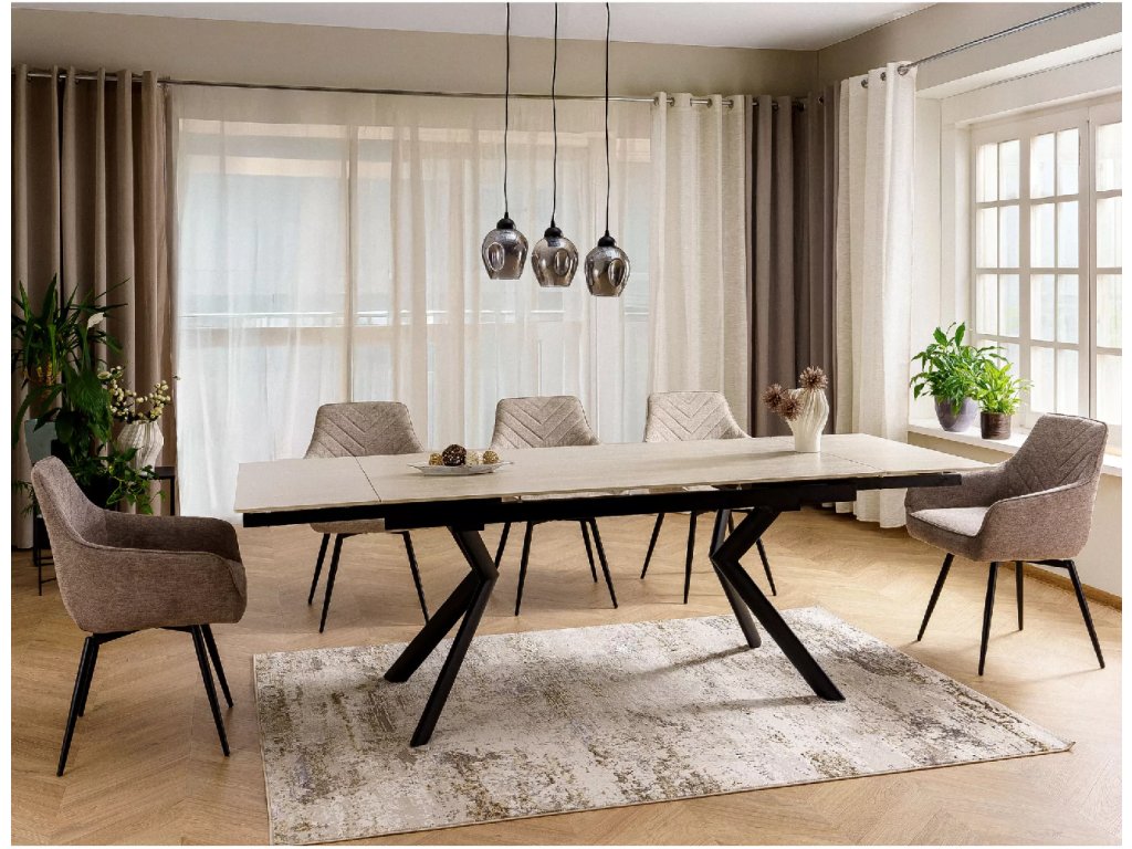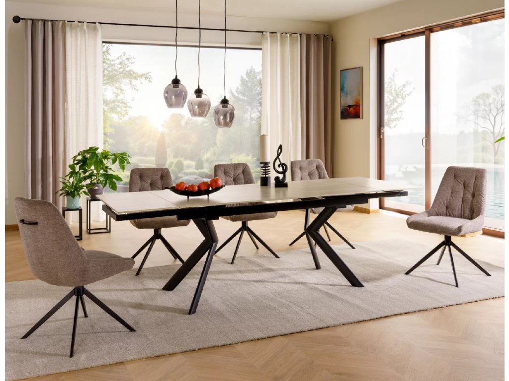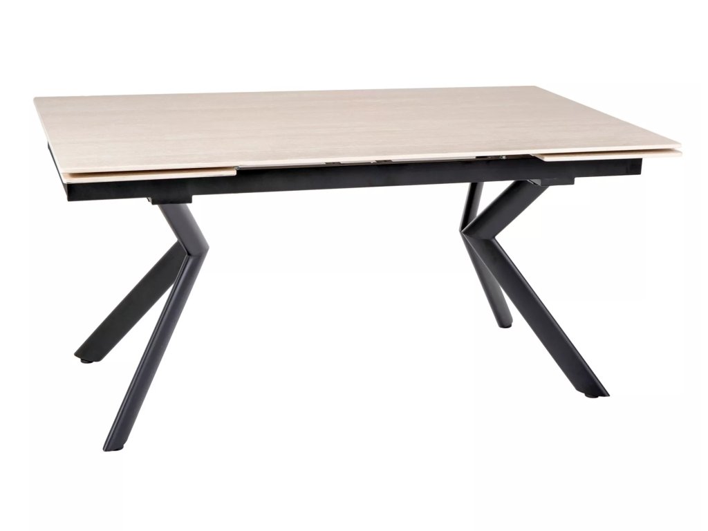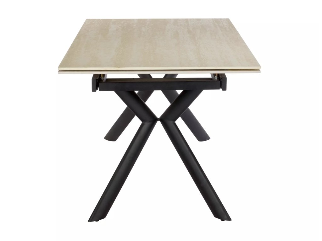 Rozkládací stůl, deska: keramika, rám: kov, barva: travertin matná béžová / černá.