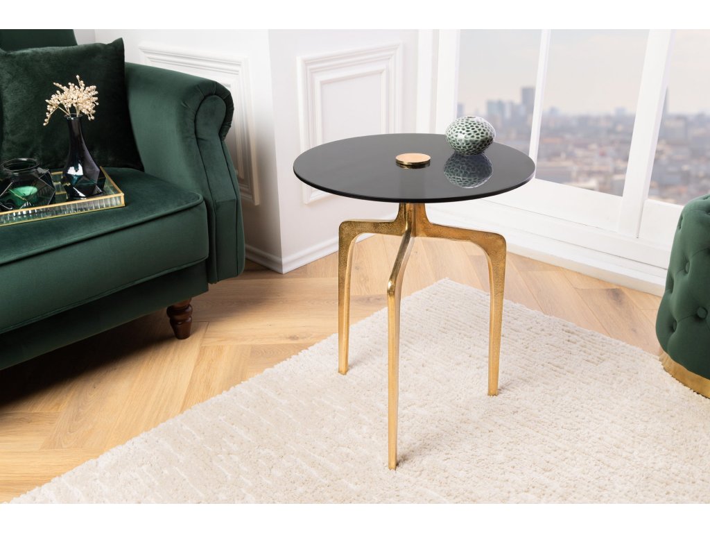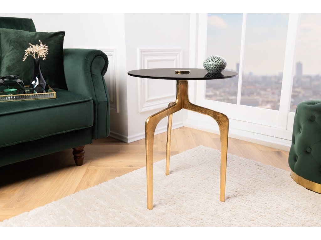 Odkládací stolek ABSTRACT 55cm mosazné nohy a černá skleněná deska