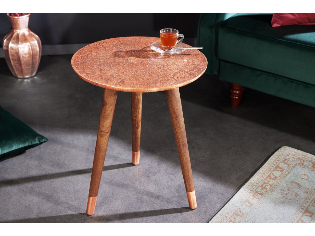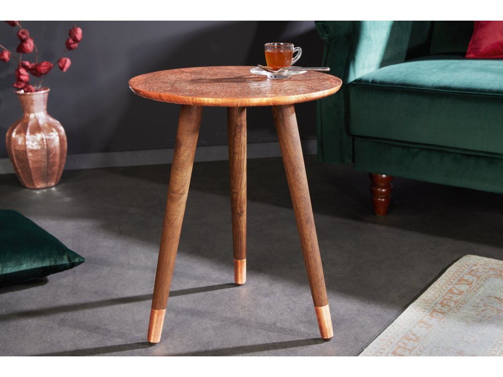 Odkládací stolek ALCASAR 50 cm akáciové dřevo a potažený kov starožitná měď
