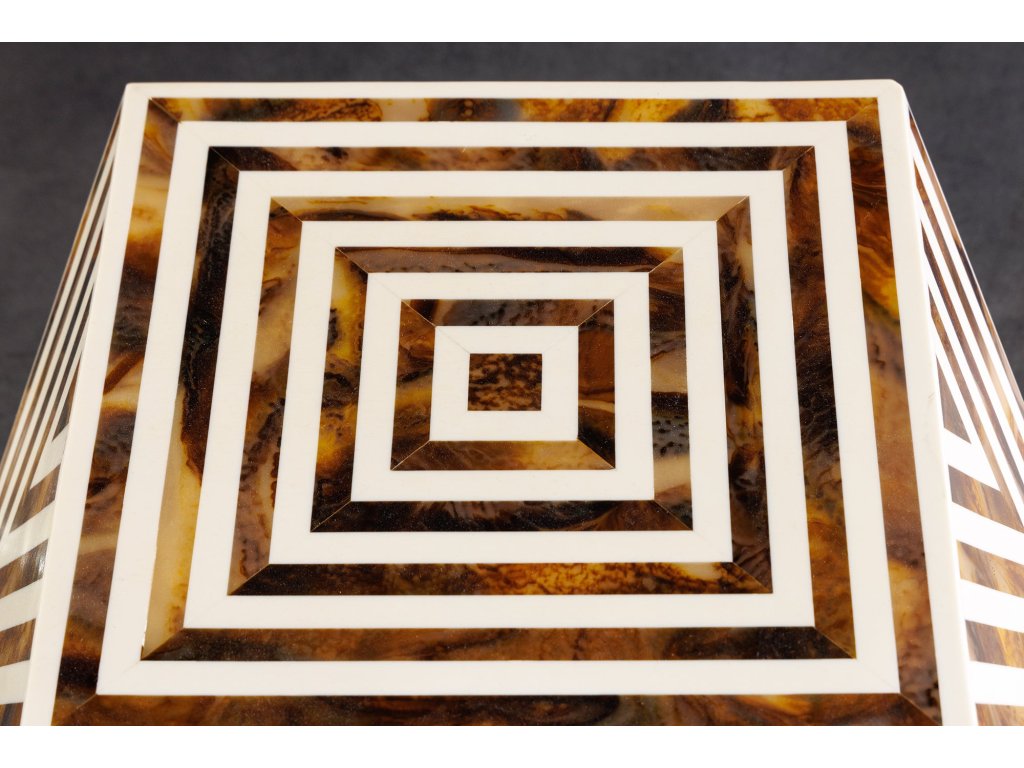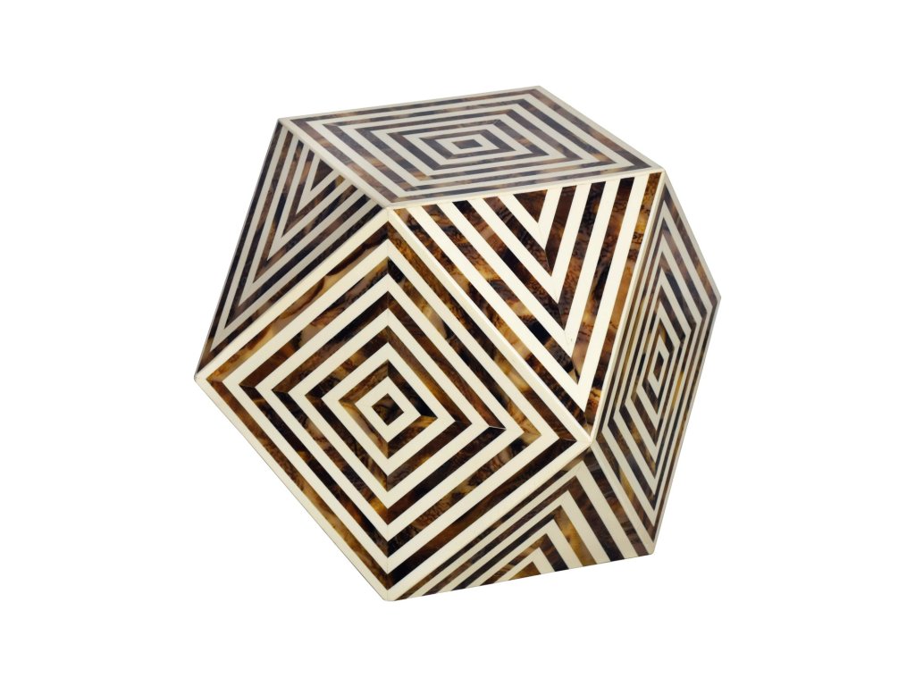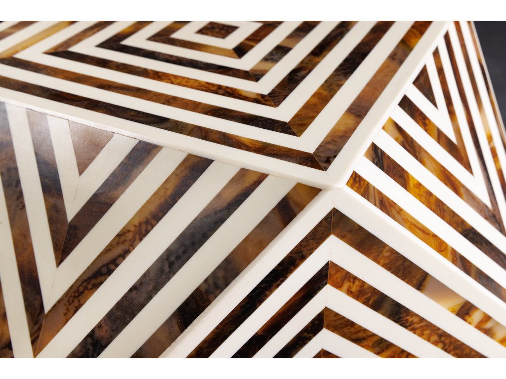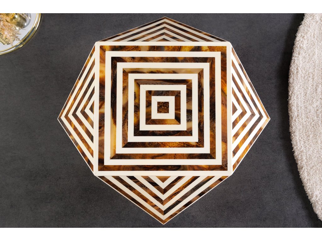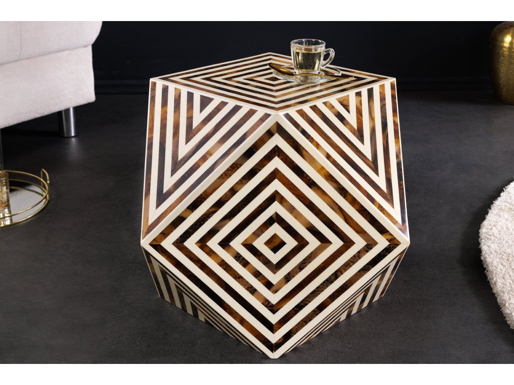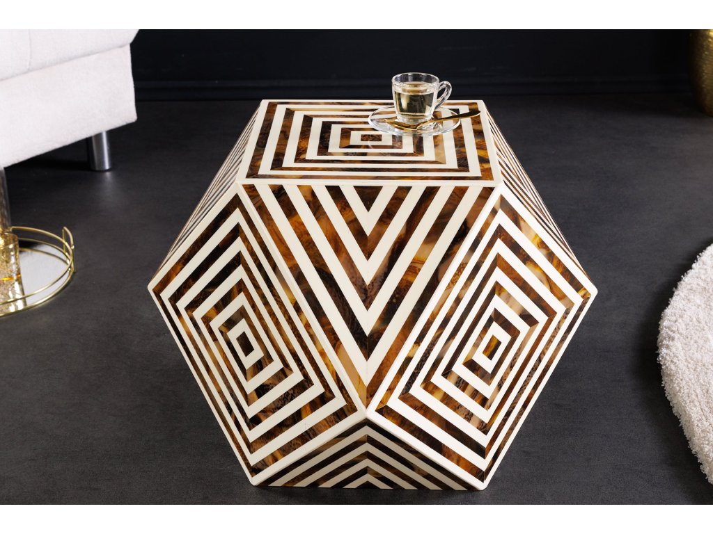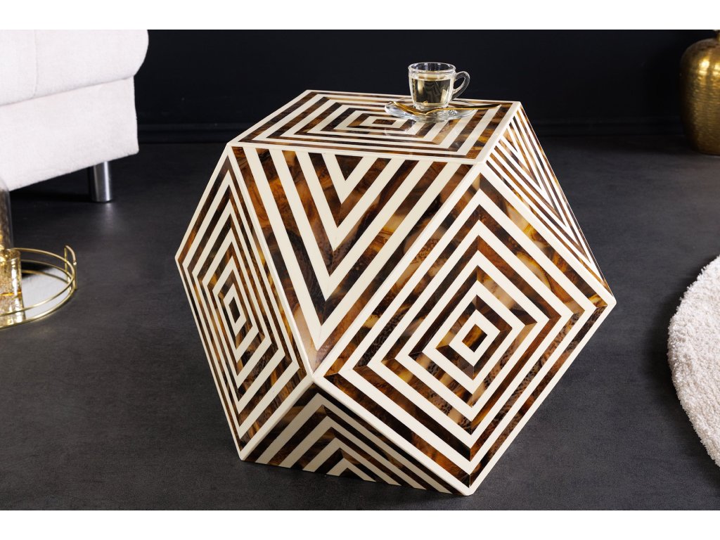 Odkládací stolek BONE INLAY 40cm z buvolích kostí bílohnědý v zebřím vzhledu