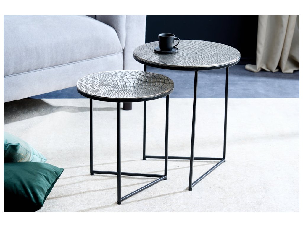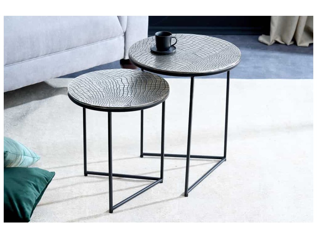 Odkládací stolek ELEMENTS 40 cm krokodýlí sada 2 ks starožitných stříbrných