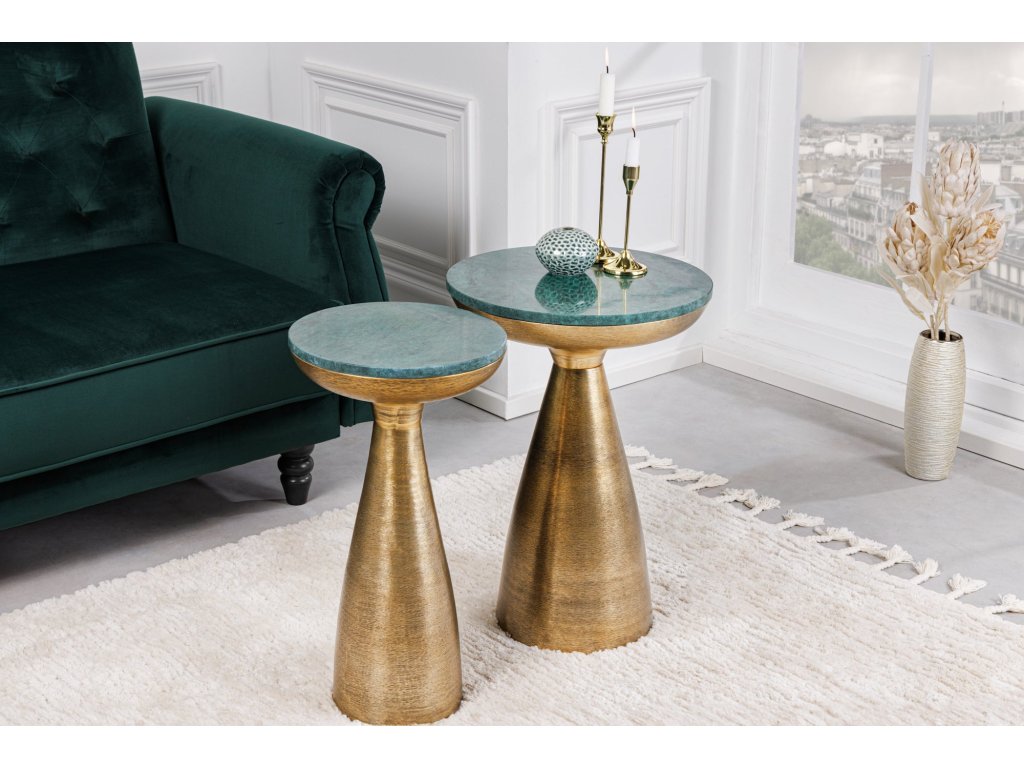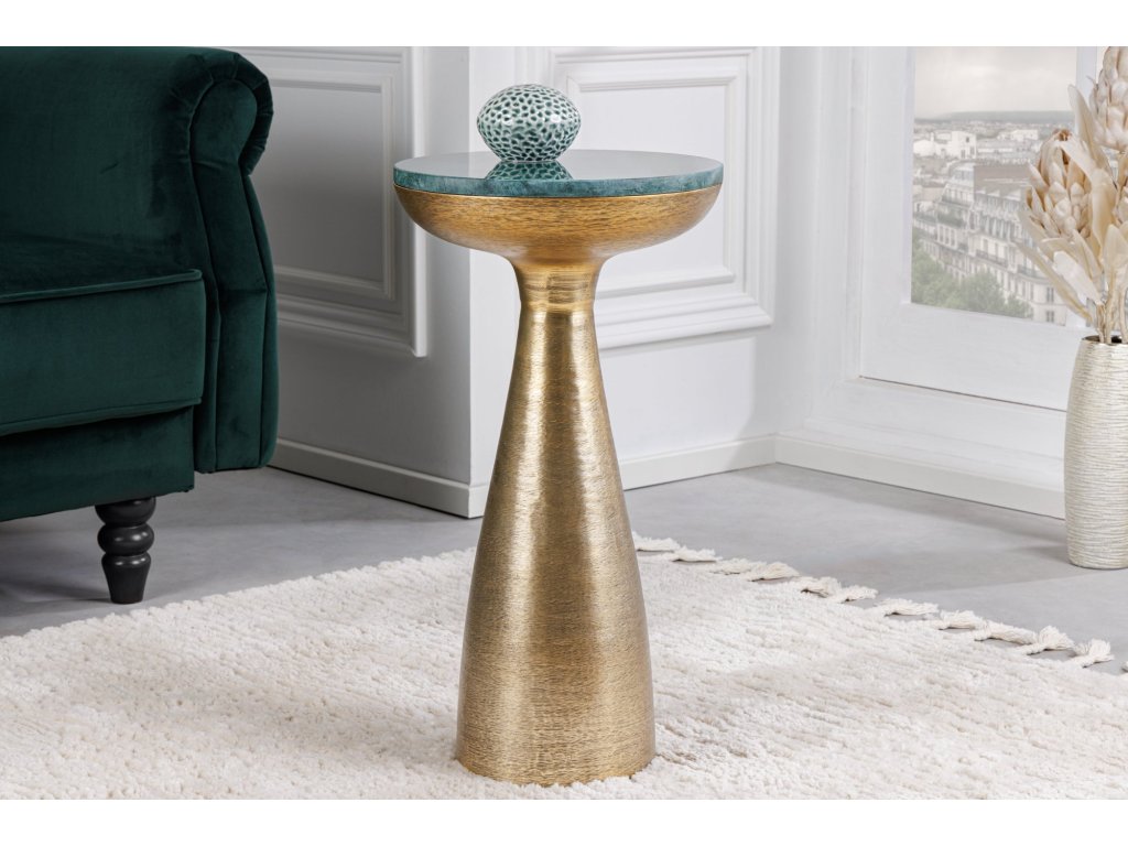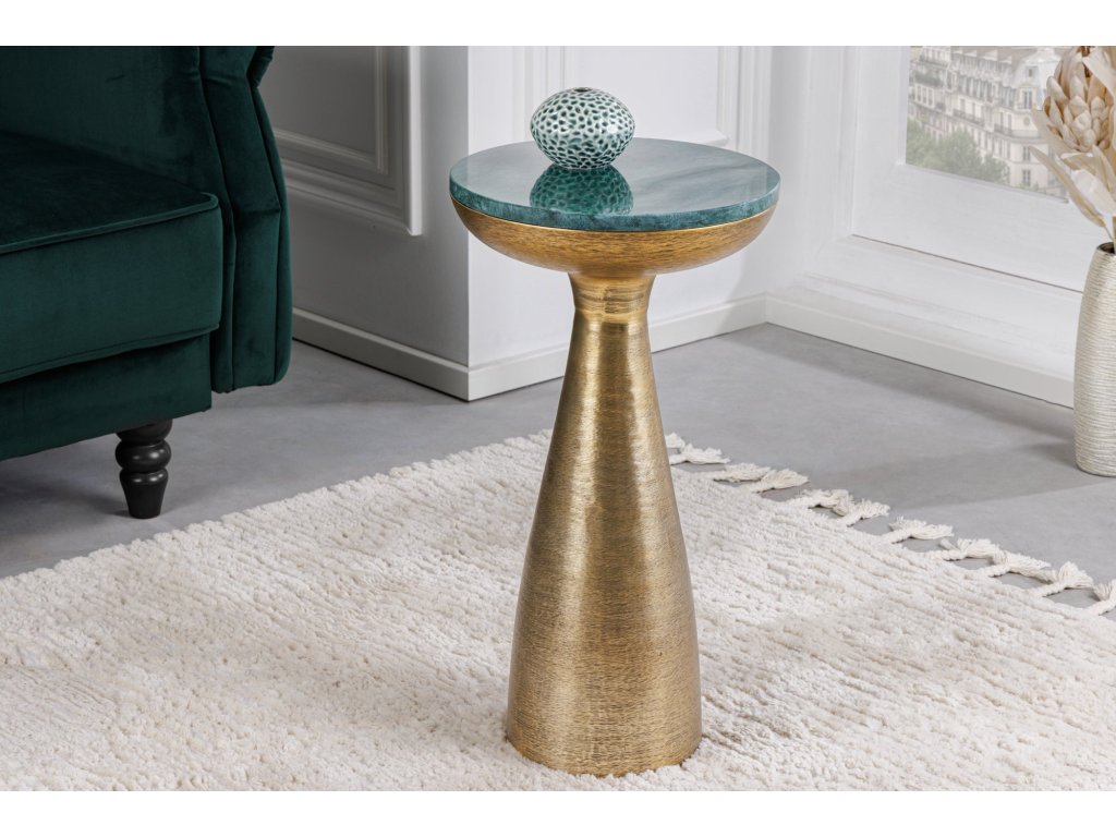 Odkládací stolek ELEMENTS 55cm zlatý s odnímatelnou mramorovou deskou zelený