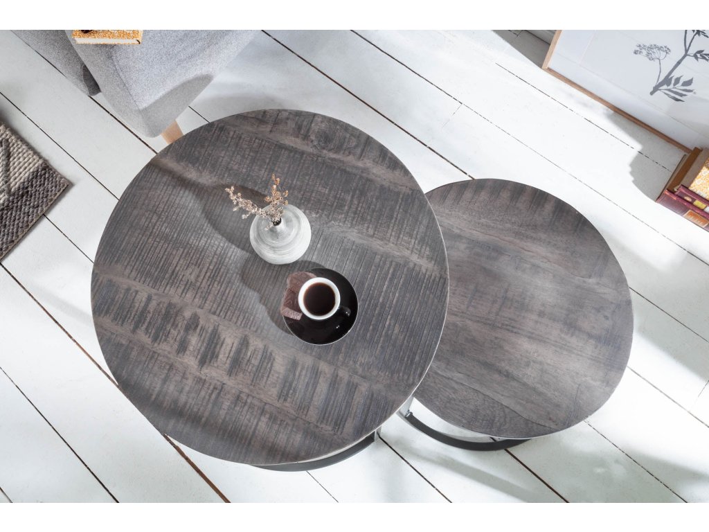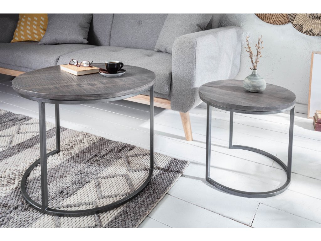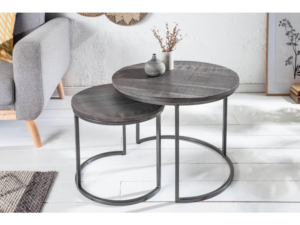 Odkládací stolek ELEMENTS sada 2 ks mangovníkového dřeva šedé barvy