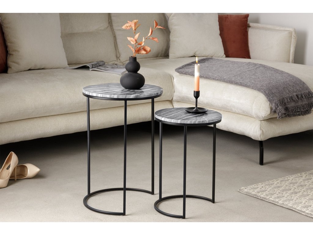 Odkládací stolek ELEMENTS sada 2 ks mramorově šedé