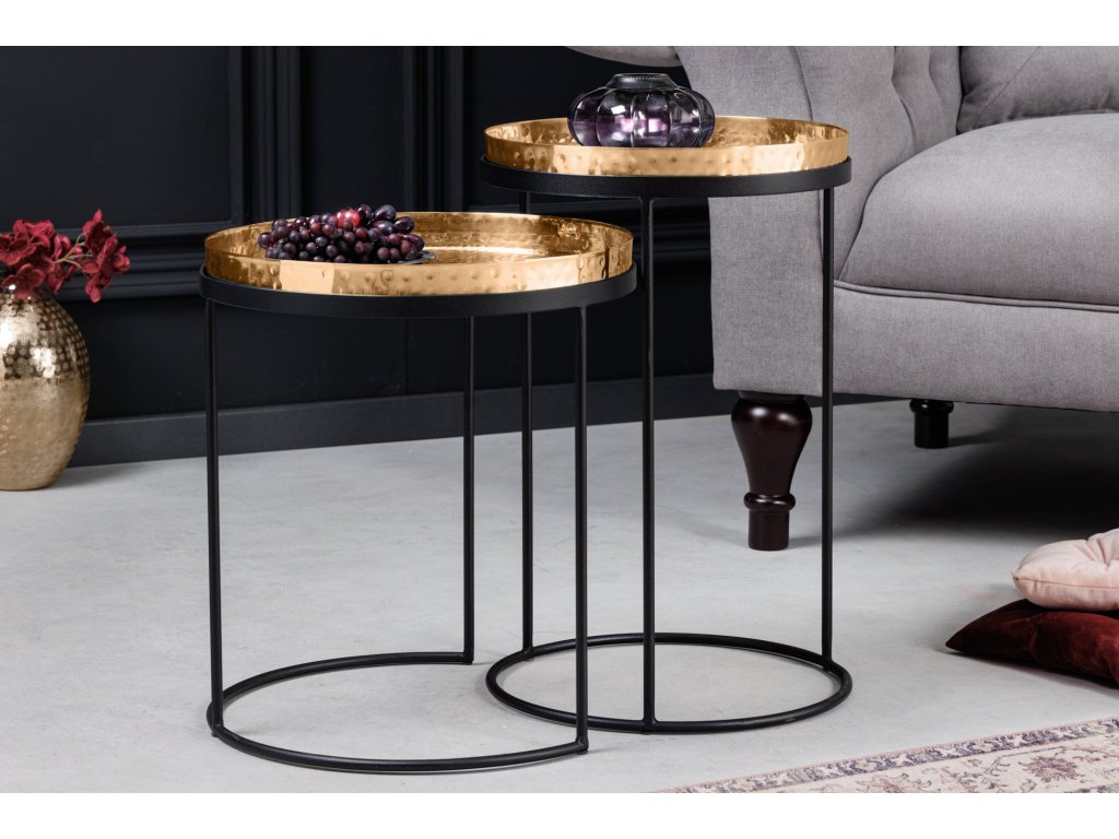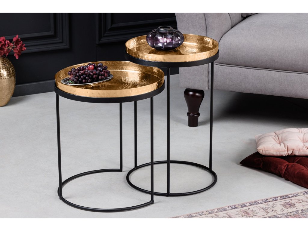 Odkládací stolek ELEMENTS sada 2 vyjímatelných táců s efektem rázu kladívka zlatá