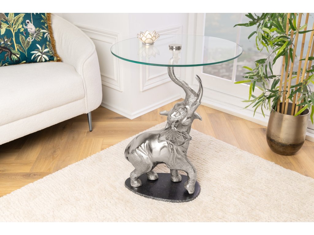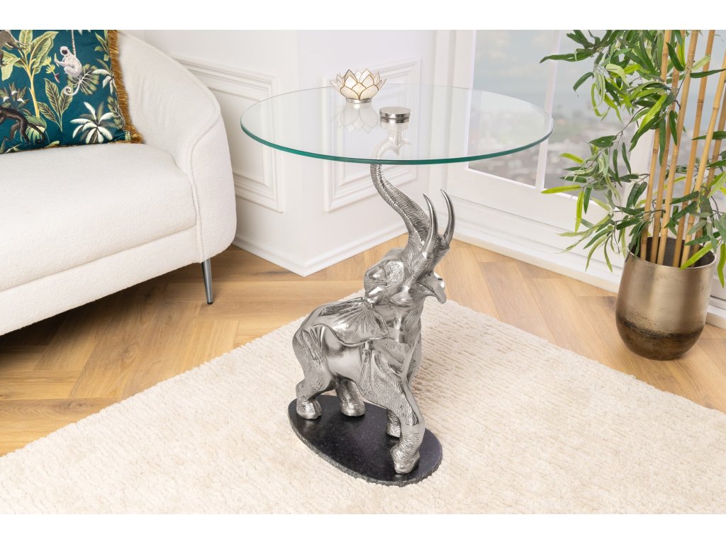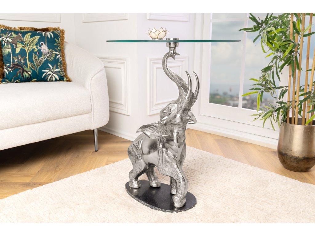 Odkládací stolek ELEPHANT 80cm stříbrný s mramorovou podnoží