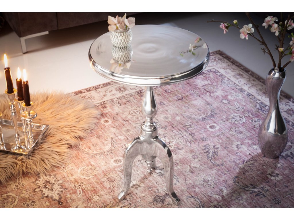 Odkládací stolek JARDIN 55cm kulatý hliník stříbrný