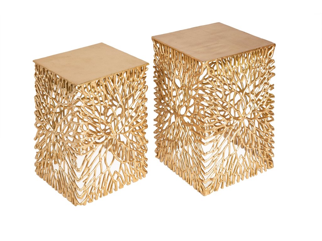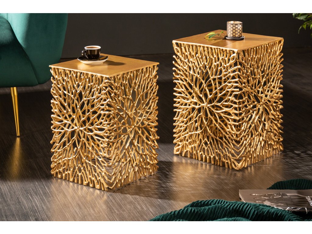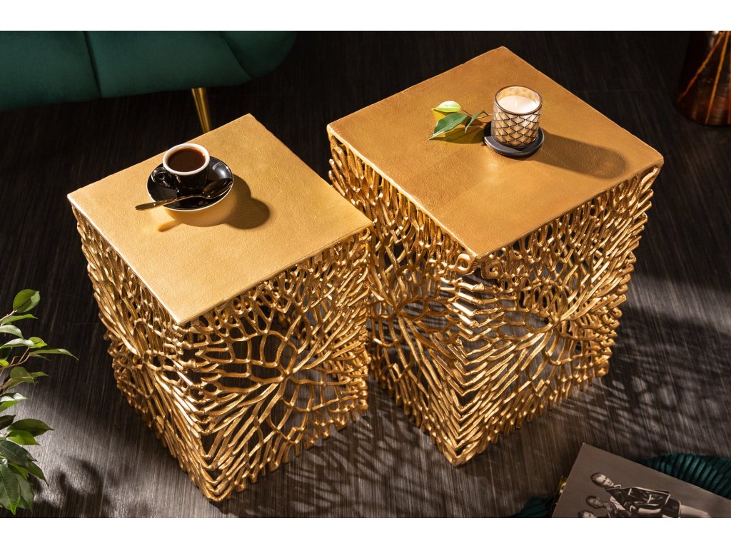 Odkládací stolek LEAF 40-45cm sada 2 zlatých