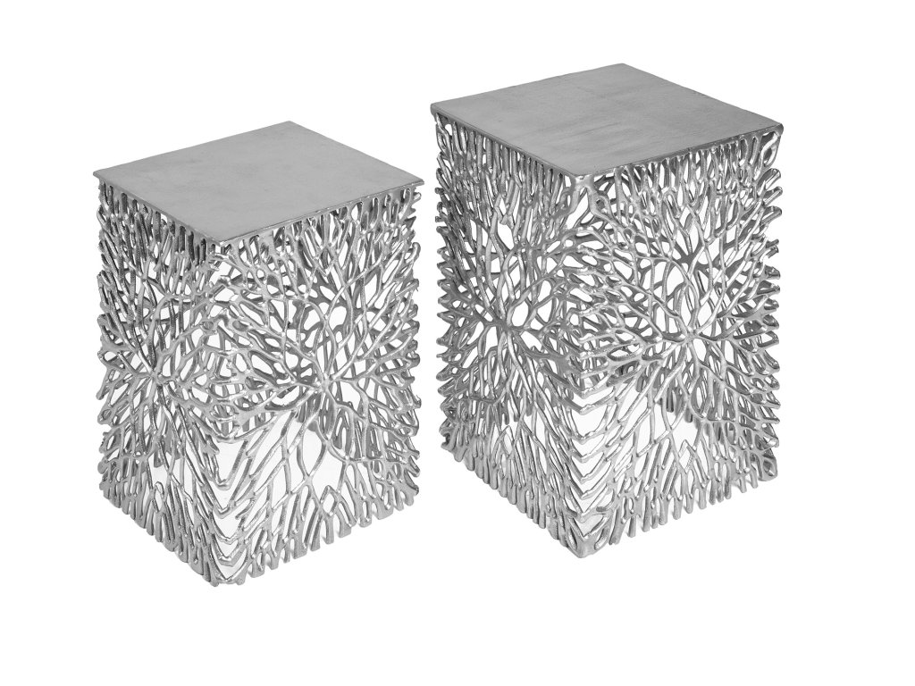 Odkládací stolek LEAF 40-45cm sada 2ks stříbrných