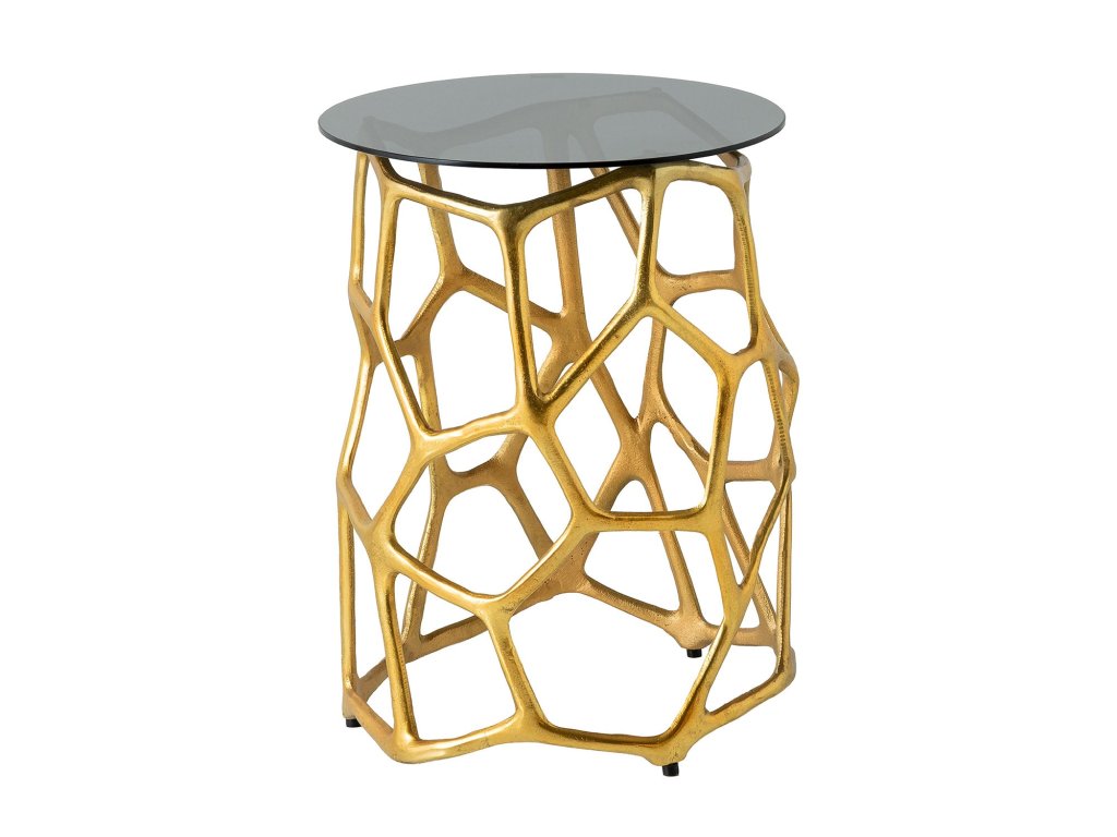 Odkládací stolek LIQUID GEOMETRIE 50cm tvrzené černé sklo zlaté