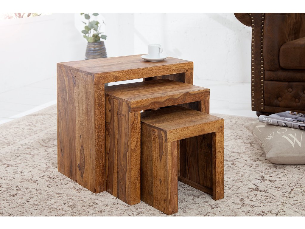 Odkládací stolek MADEIRA Sada 3ks sheeshamového dřeva
