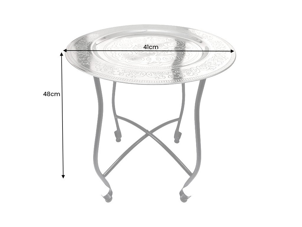 Odkládací stolek MARRAKESH 50cm stříbrný kladívkový design vyjímatelný tác