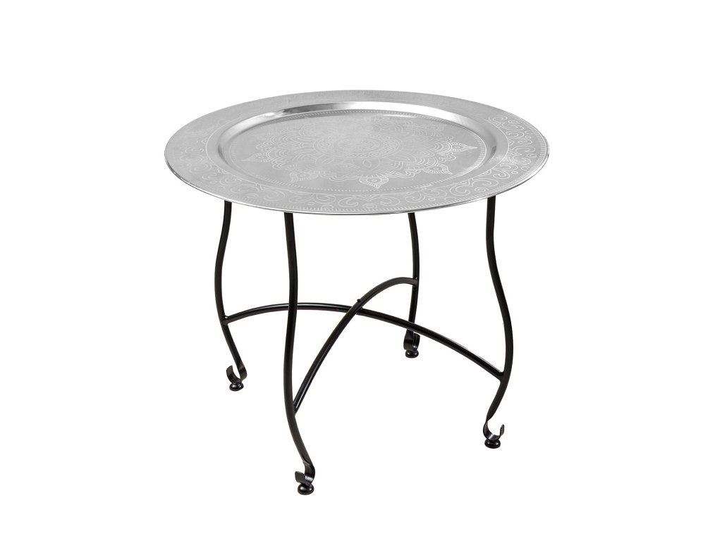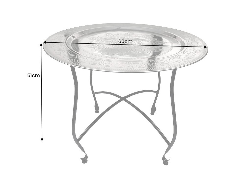 Odkládací stolek MARRAKESH 60cm stříbrný kladívkový design vyjímatelný podnos