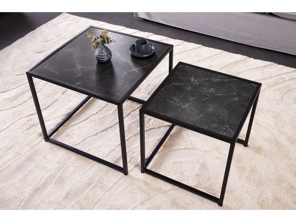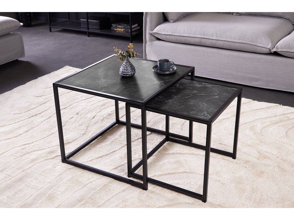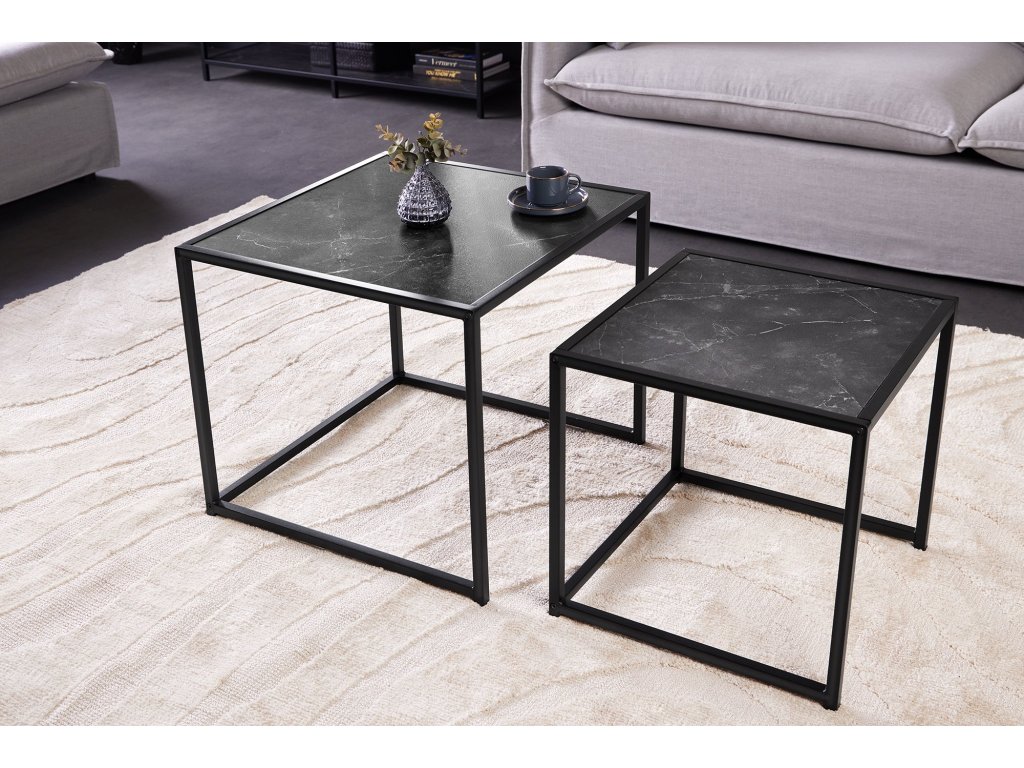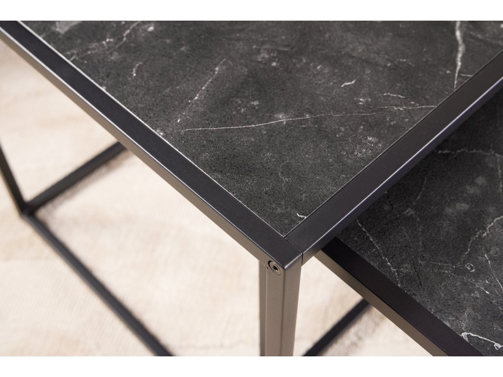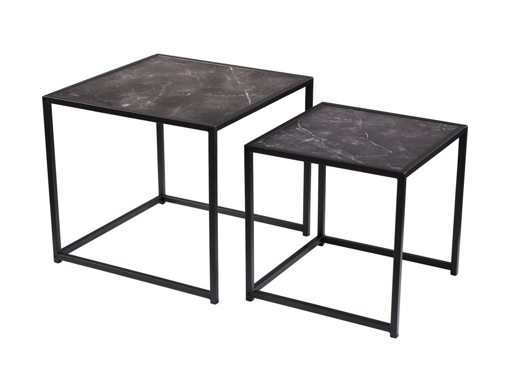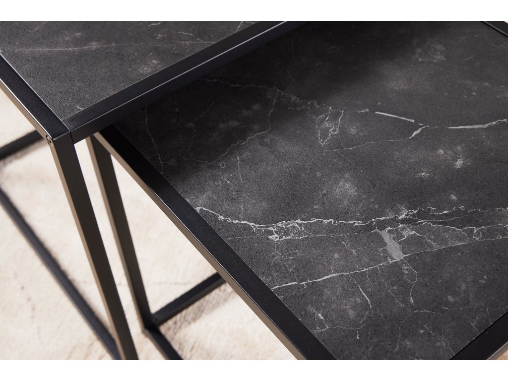Odkládací stolek SLIM LINE 40-50cm sada 2 ks mramorového vzhledu