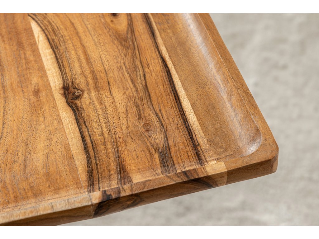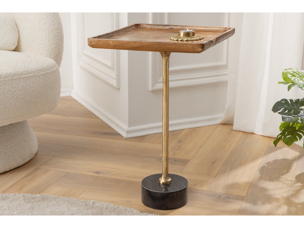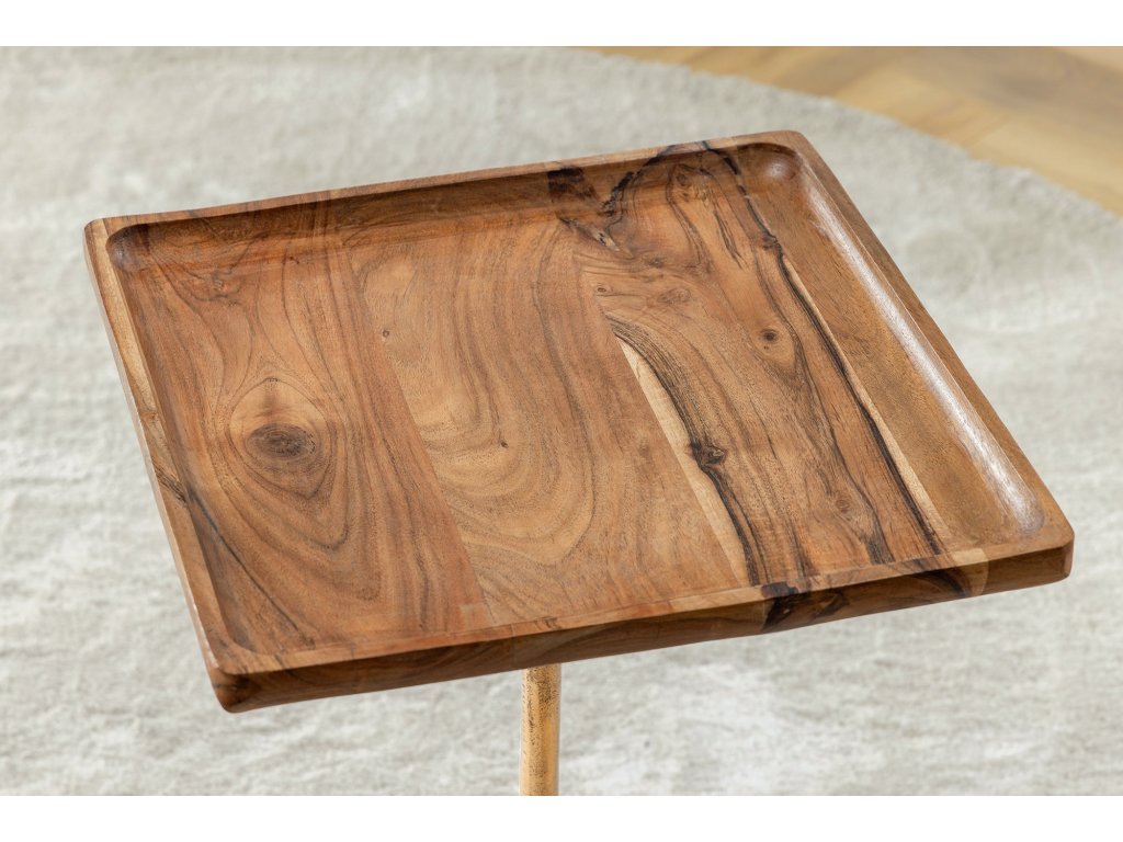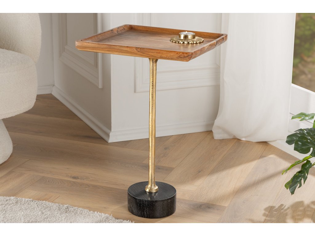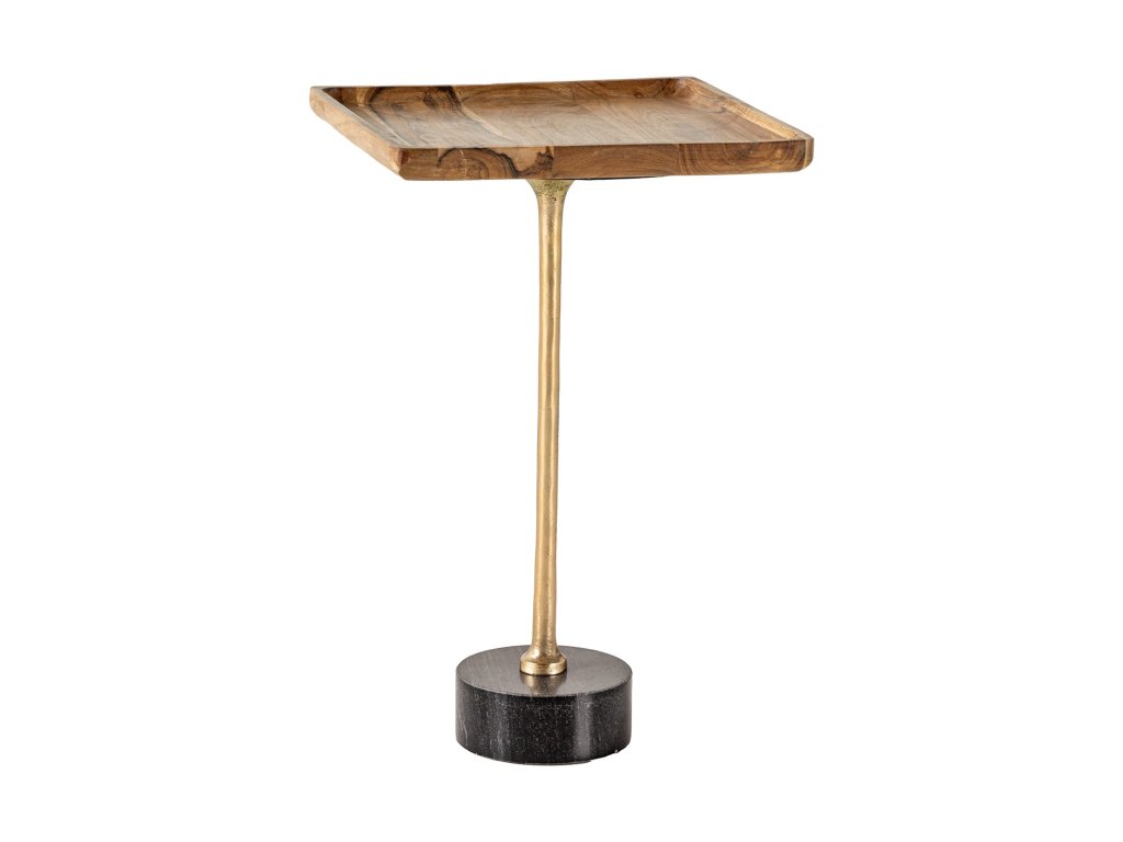 Odkládací stolek TRAYFUL 55cm čtvercový 35cm akátová deska a mramorová základna