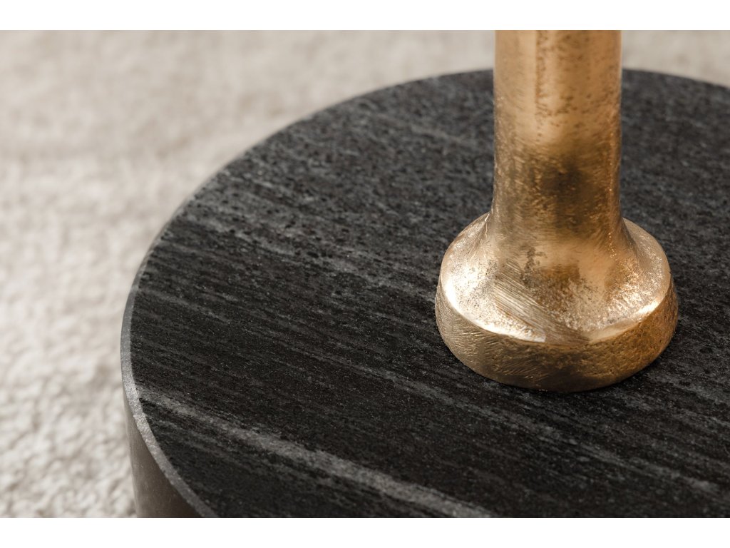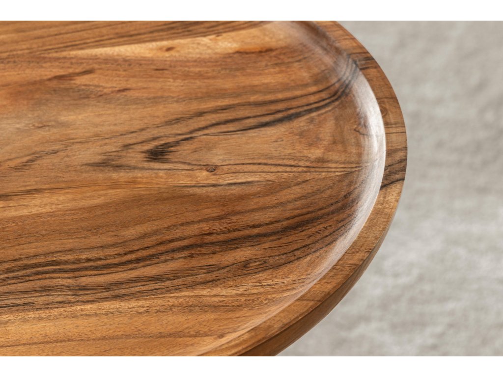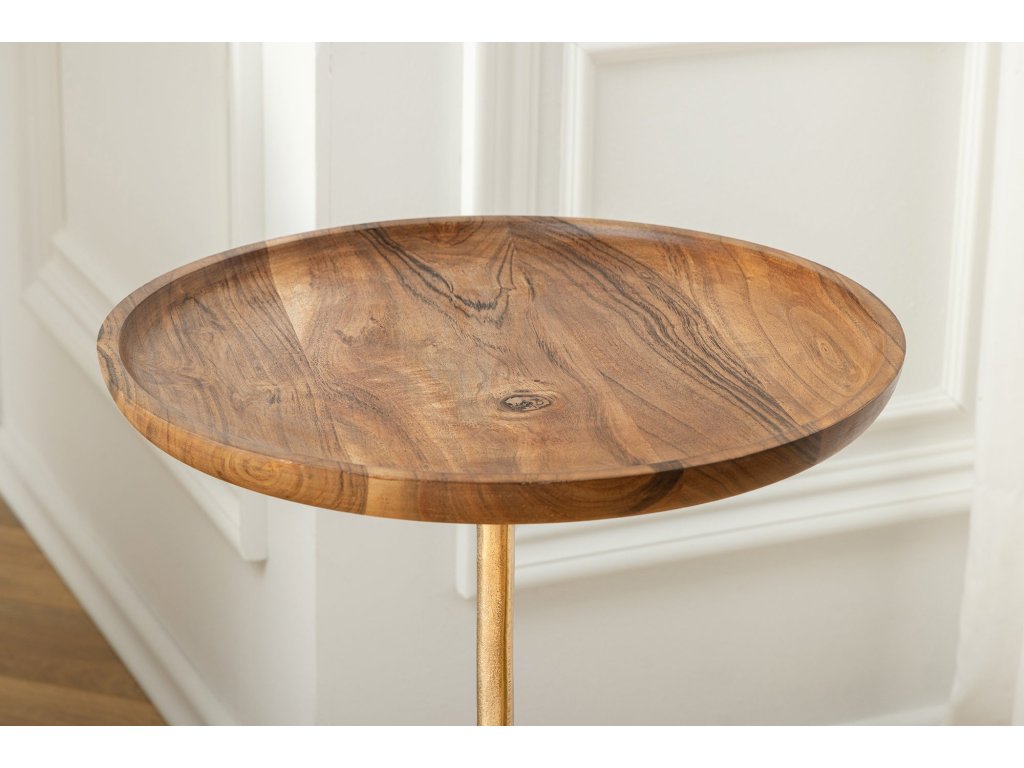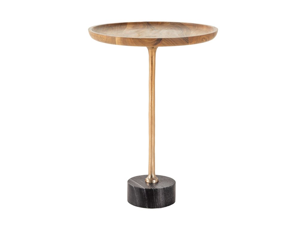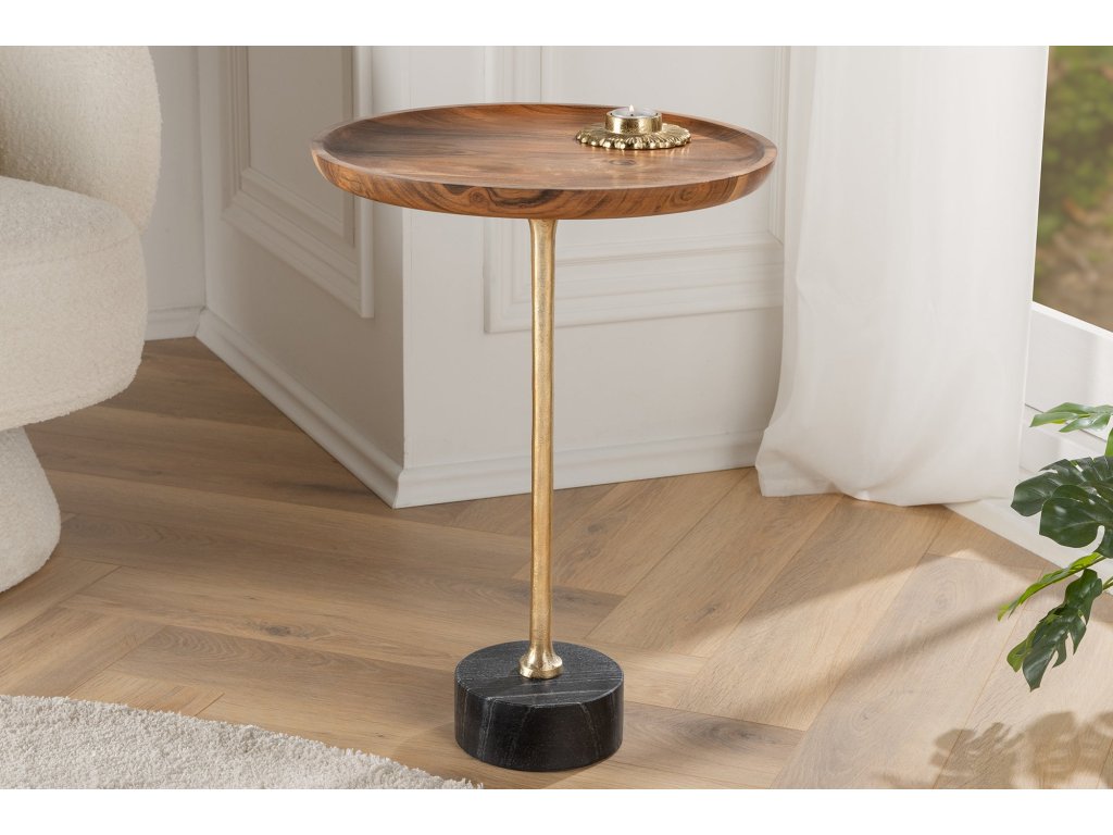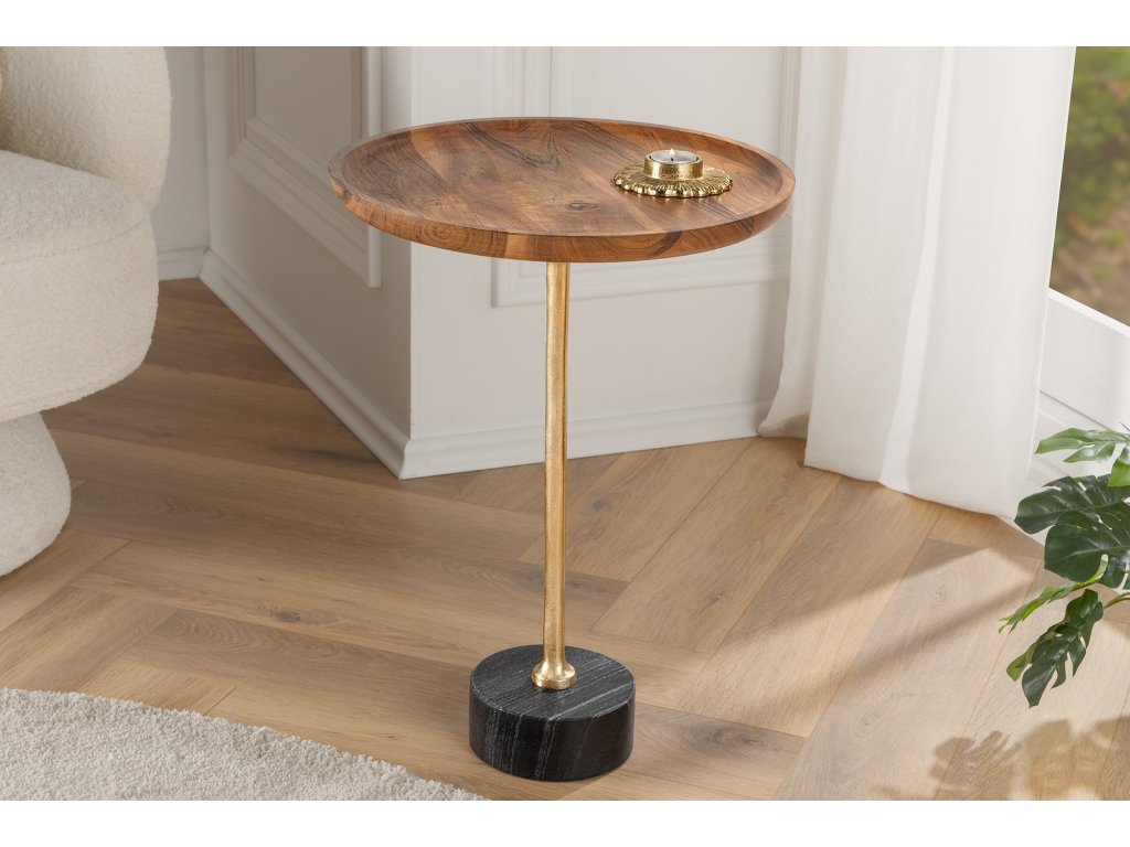 Odkládací stolek TRAYFUL 55cm kulatý 40cm káciová deska a mramorová základna