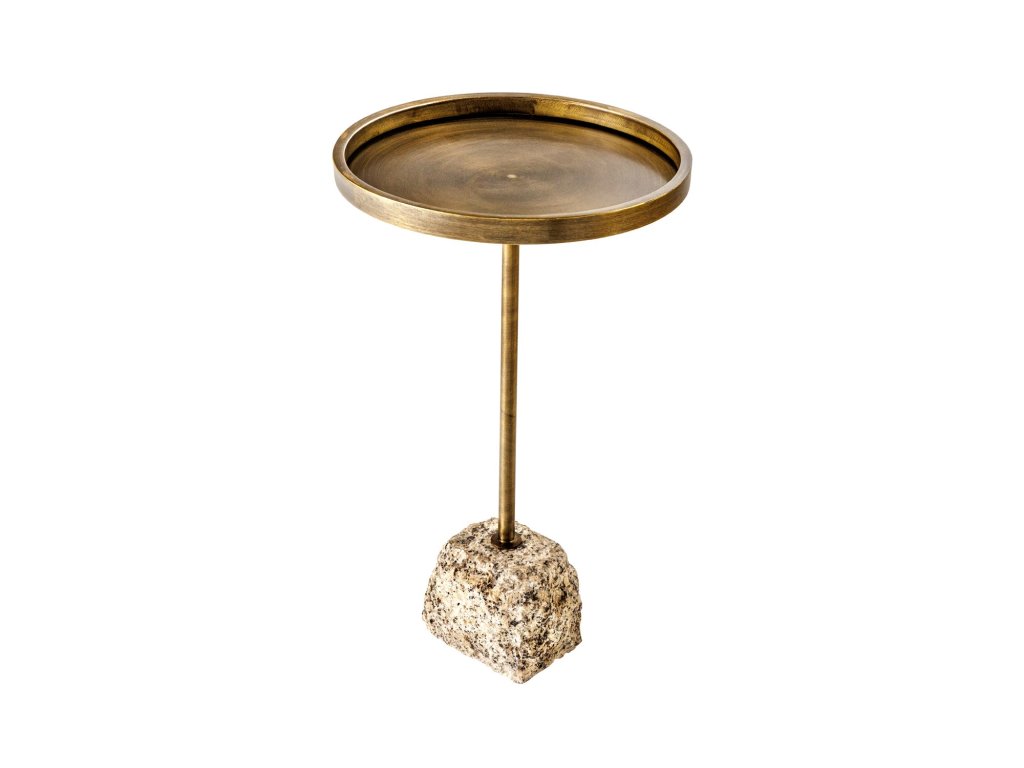 Odkládací stolek TRAYFUL 60 cm mramorová základna a starožitná mosazná železná deska