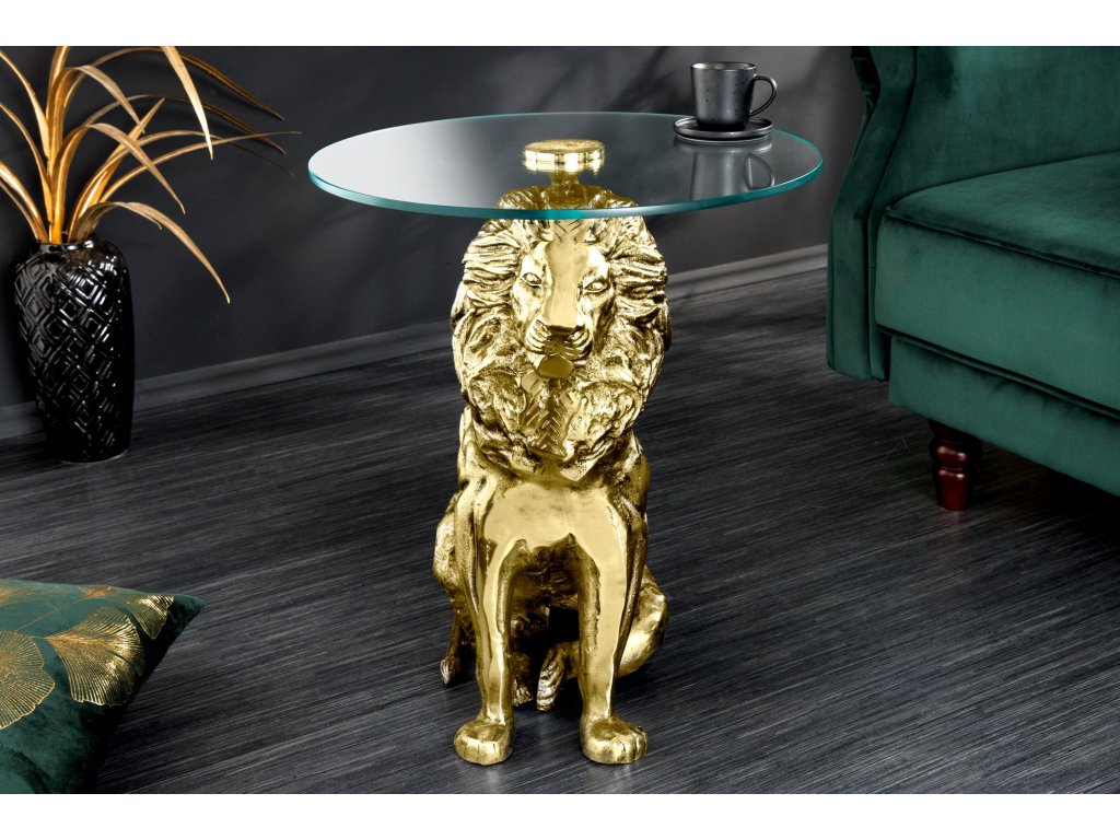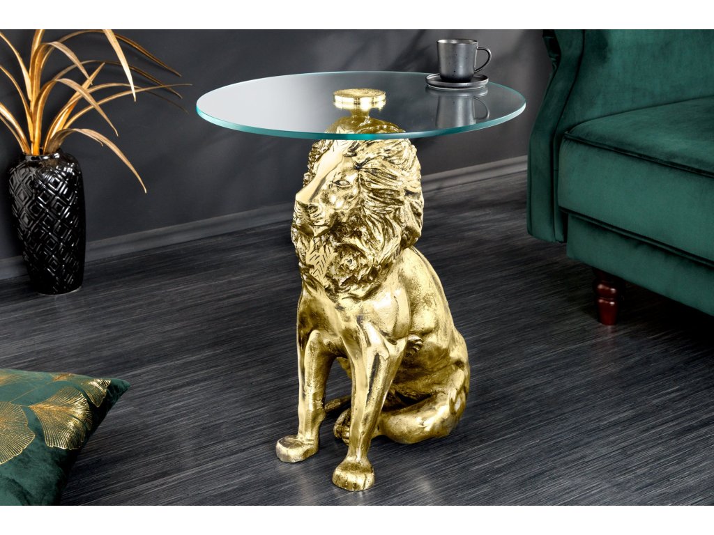 Odkládací stolek WILDLIFE LION 60cm starožitné zlaté