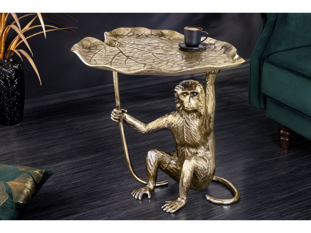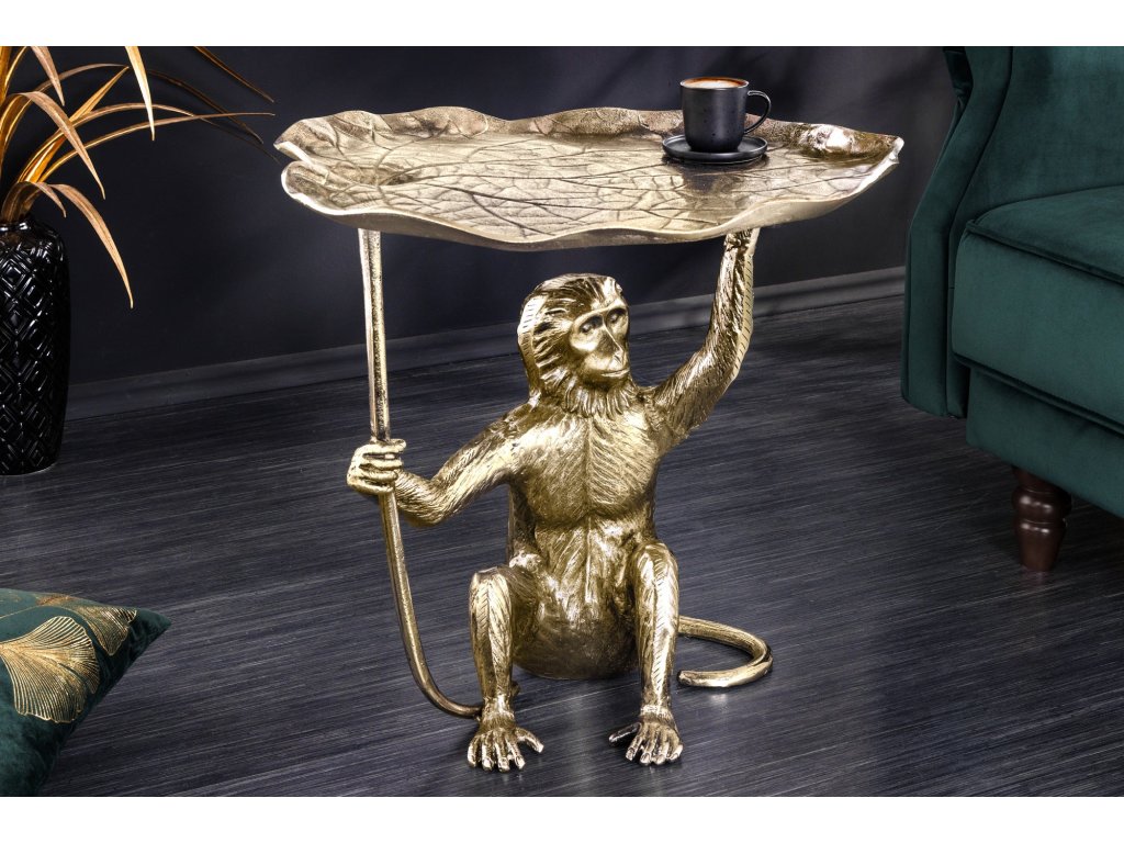 Odkládací stolek WILDLIFE MONKEY 55cm starožitné zlaté