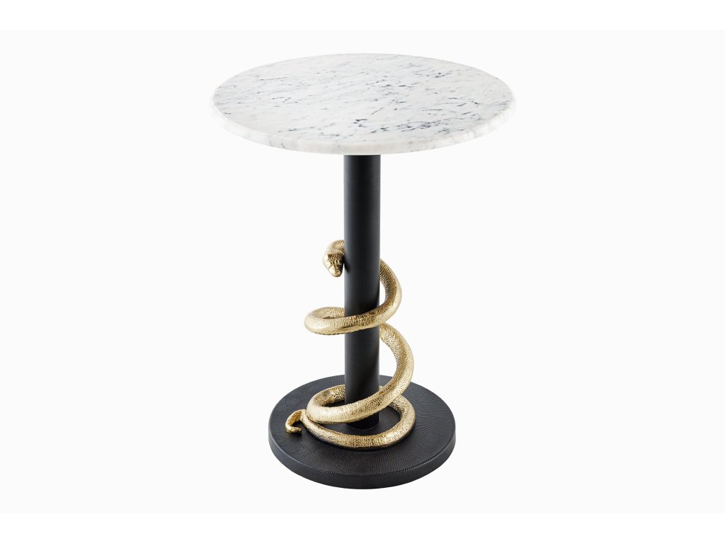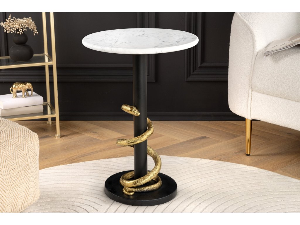 Odkládací stolek WILDLIFE SNAKE 50cm zlato černý bílý mramor