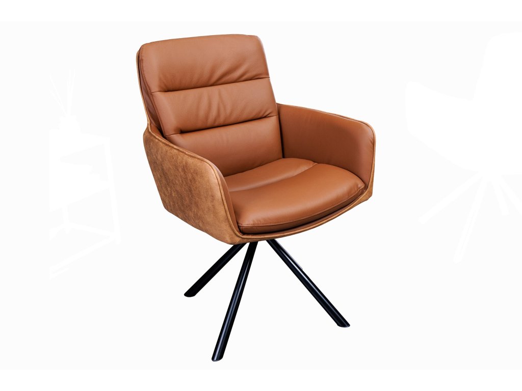 Otočná židle GEORGE o 360° s područkami z pravé kůže a mikrovlákna koňaku