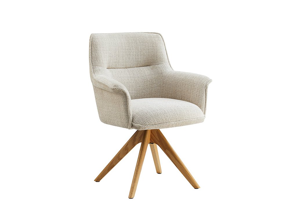 Otočná židle LE GRAND, otočná o 180°, béžová ženilková látka, s područkami a nohami z dubového dřeva