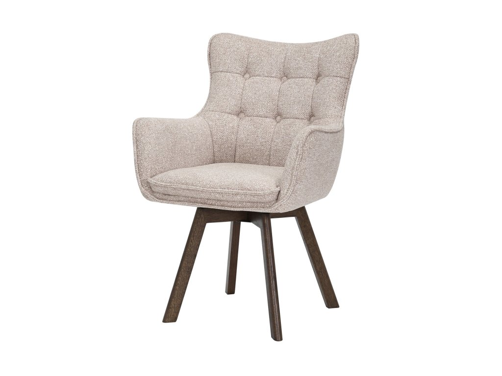 Otočná židle THOR 360° s područkami, texturovaná látka, světle béžová, s rámem z tmavého dubu, přírodní
