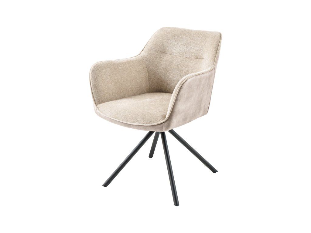 Otočná židle VERONA texturovaná látka a sametové šampaňské