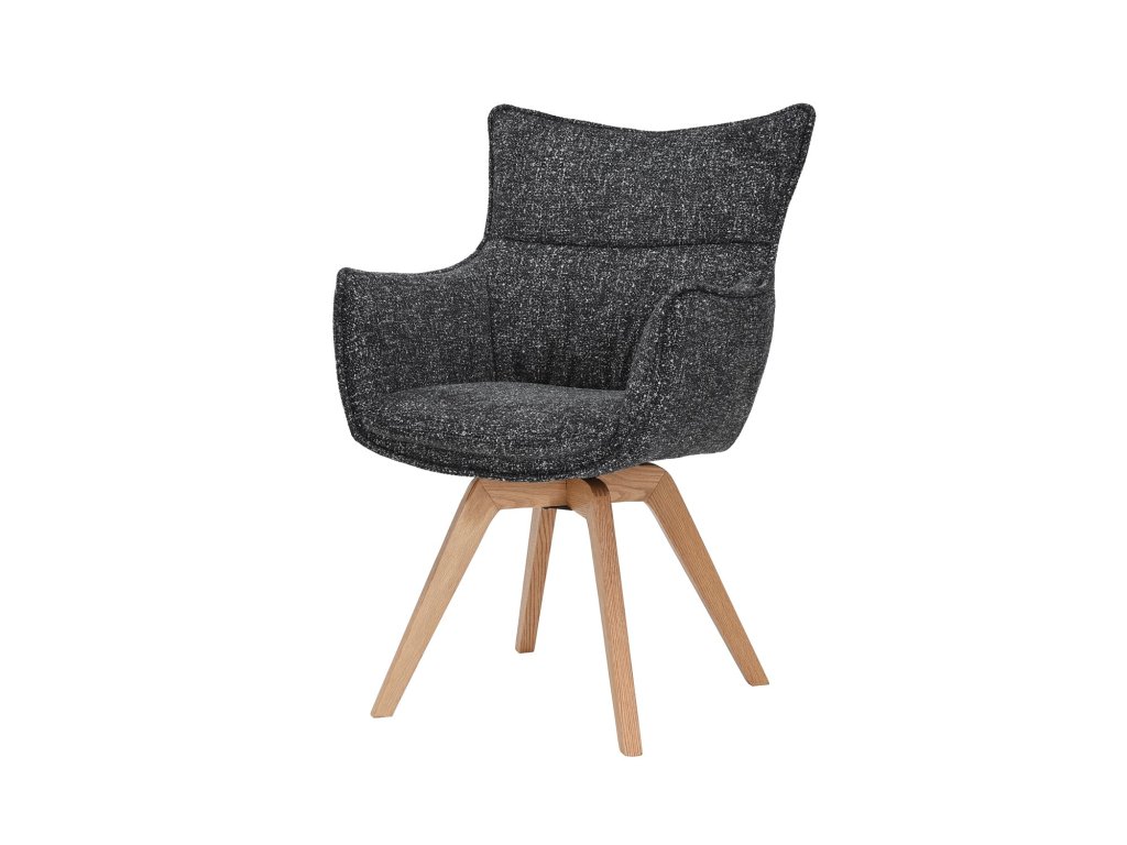 Otočná židle VOGUE 360° s područkami, texturovaná látka, antracitová, s dubovým rámem přírodní barvy