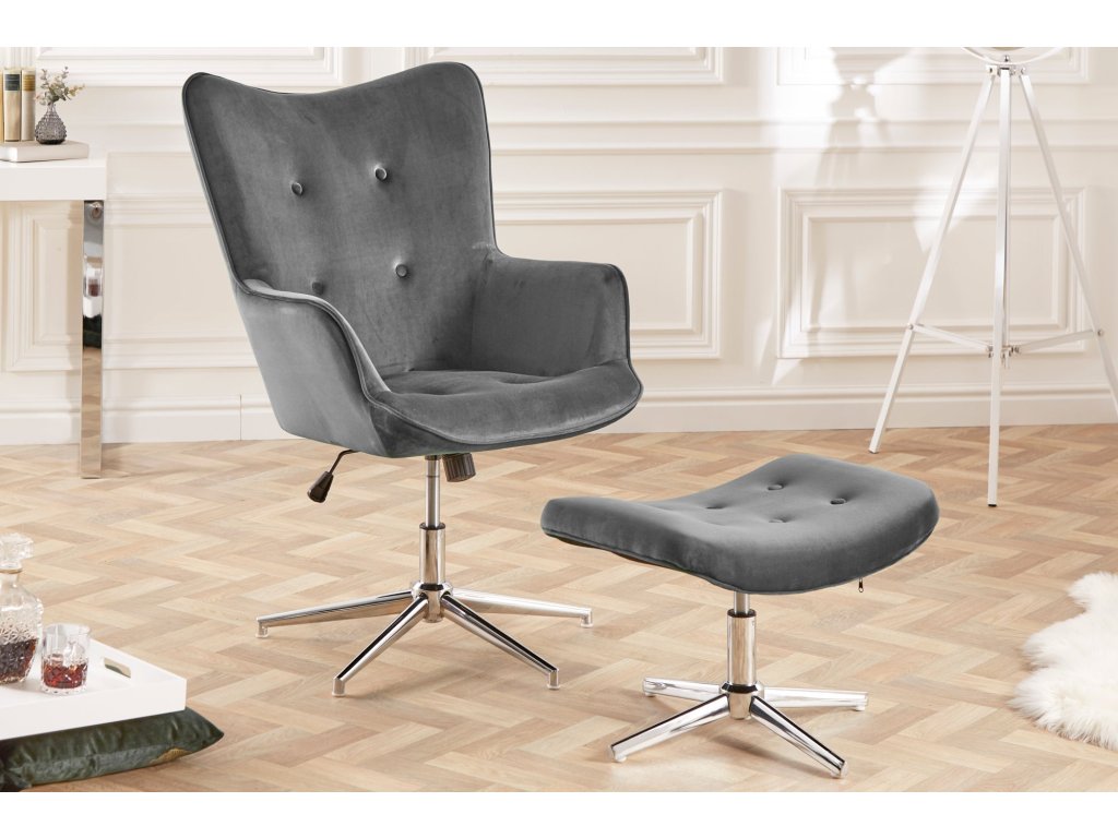 Otočný taburet LOUNGER 39cm sametově šedý otočný