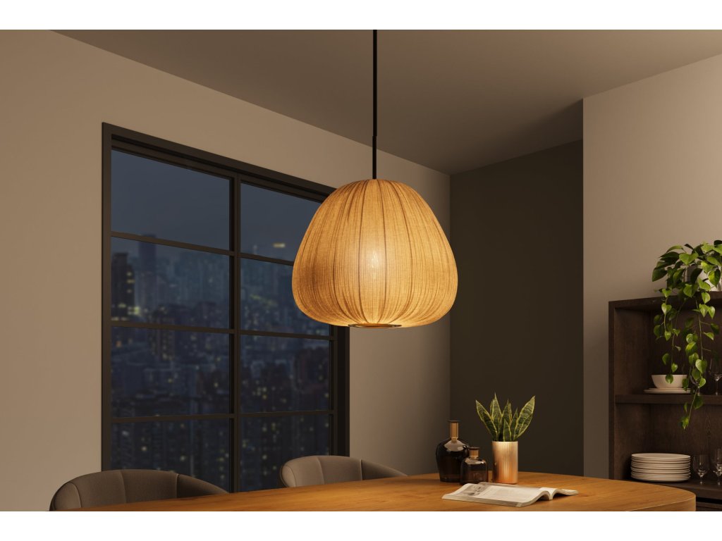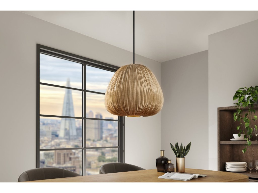 Závěsná lampa ORGANIC 30cm stínidlo z přírodní látky zlaté v boho stylu