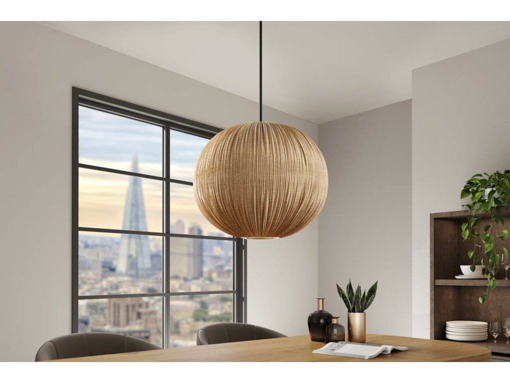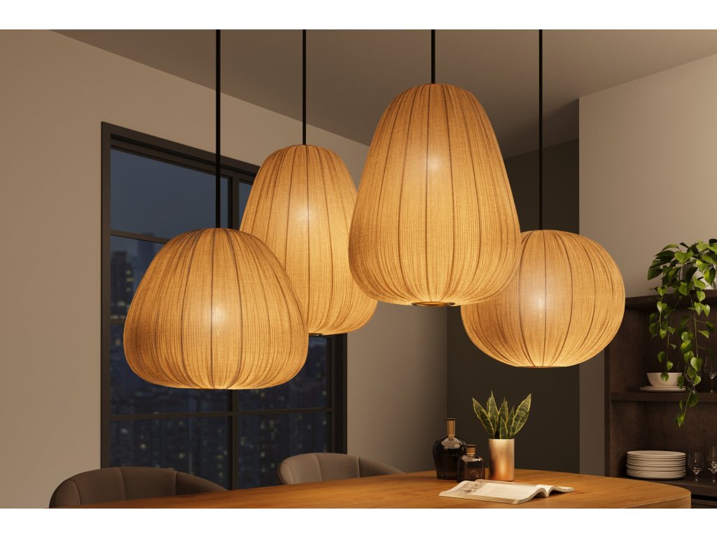 Závěsná lampa ORGANIC 35cm stínidlo z přírodní látky zlaté v boho stylu