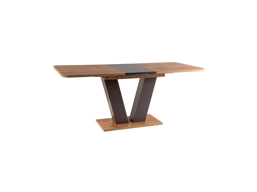 Rozkládací stůl, deska: laminovaná deska, rám: laminovaná deska, barva: dub Wotan / hnědá. Tloušťka desky: 18 mm.